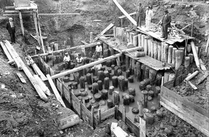 ภาพฐานเสาไม้ใต้สิ่งก่อสร้าง : https://pilebuck.com/wp-content/uploads/2024/11/Venice-timber-piles-800×525.png