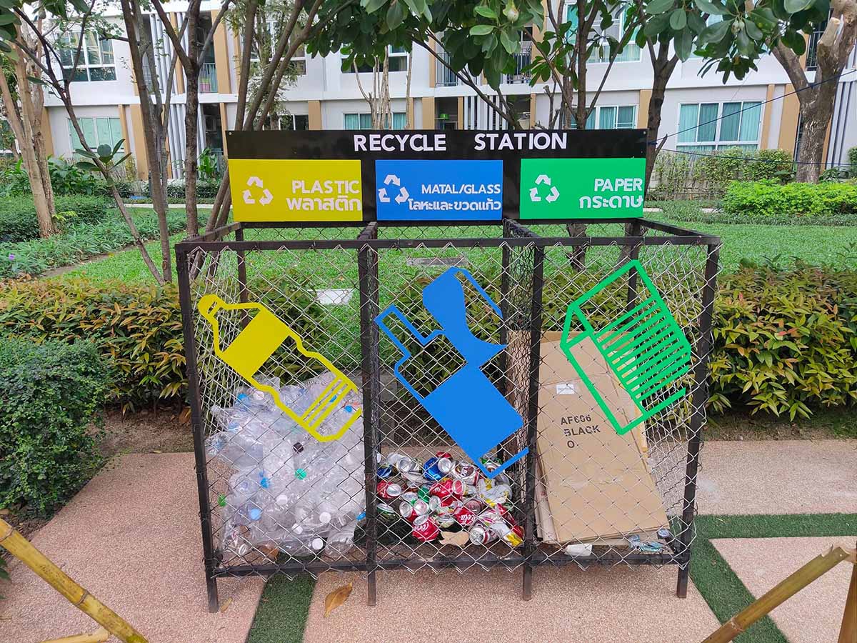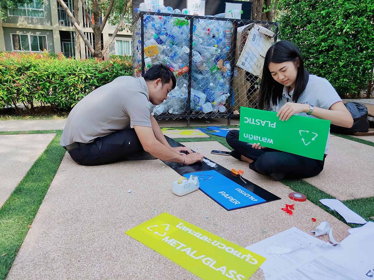 – จัดสิ่งอำนวยความสะดวกในการแยกขยะ โดยมีถังขยะที่แยกประเภทขยะชัดเจน ตั้งไว้ในจุดต่างๆ ในบริเวณโครงการ เพื่ออำนวยความสะดวกแก่ลูกบ้านและผู้พักอาศัย และการจัดการคัดแยกขยะที่มีประสิทธิภาพ