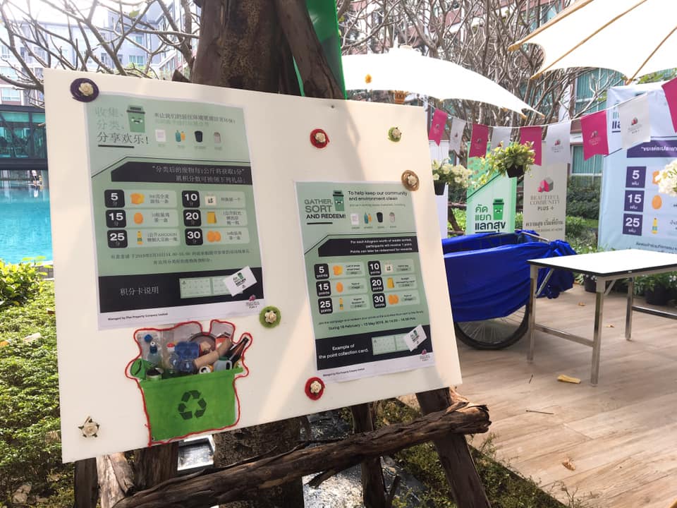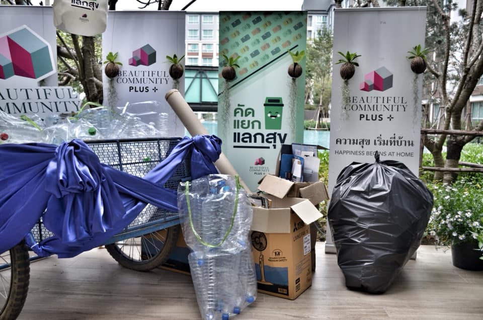 – จัดกิจกรรมให้ความรู้และส่งเสริมการแยกขยะในโครงการ เช่น กิจกรรม “คัดแยก แลกสุข” ส่งเสริมให้เกิดการคัดแยกขยะภายในโครงการ ลดปริมาณขยะสิ้นเปลืองและเพื่อให้ขยะพลาสติกบางชิ้นสามารถนำกลับมาใช้ใหม่ได้อีกครั้ง โดยรายได้ส่วนหนึ่งจากการขายขยะรีไซเคิลได้นำมาเป็นผลตอบแทนกลับคืนสู่ผู้พักอาศัยในโครงการ
