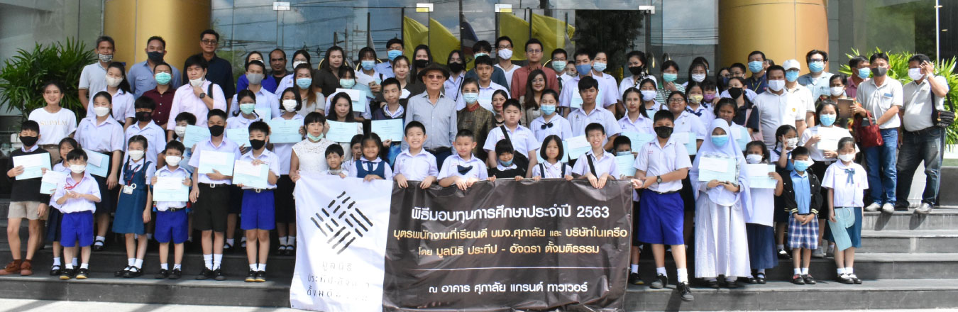มูลนิธิประทีป – อัจฉรา ตั้งมติธรรม มอบทุนการศึกษาประจำปี 2563 ภายใต้ “โครงการทุนการศึกษาบุตรพนักงานศุภาลัยที่เรียนดี” ประจำปีทั่วประเทศ โดยมี ดร.ประทีป ตั้งมติธรรม ประธานกรรมการบริหาร และ นางอัจฉรา ตั้งมติธรรม รองประธานกรรมการบริหาร บมจ.ศุภาลัย เป็นประธานในพิธีมอบทุนการศึกษาตั้งแต่ระดับประถมศึกษาจนถึงอุดมศึกษา รวมจำนวนทั้งสิ้น 167 ทุน รวมเป็นเงิน 5 แสนกว่าบาท เพื่อร่วมส่งเสริมและสร้างโอกาสการศึกษาให้แก่เยาวชน อีกทั้งเพื่อเติบโตเป็นทรัพยากรบุคคลที่มีคุณภาพของสังคมไทย ณ อาคารศุภาลัย แกรนด์ ทาวเวอร์