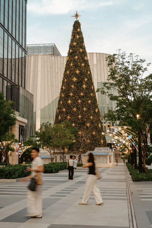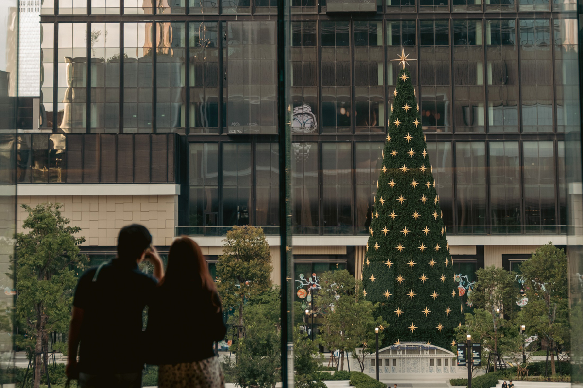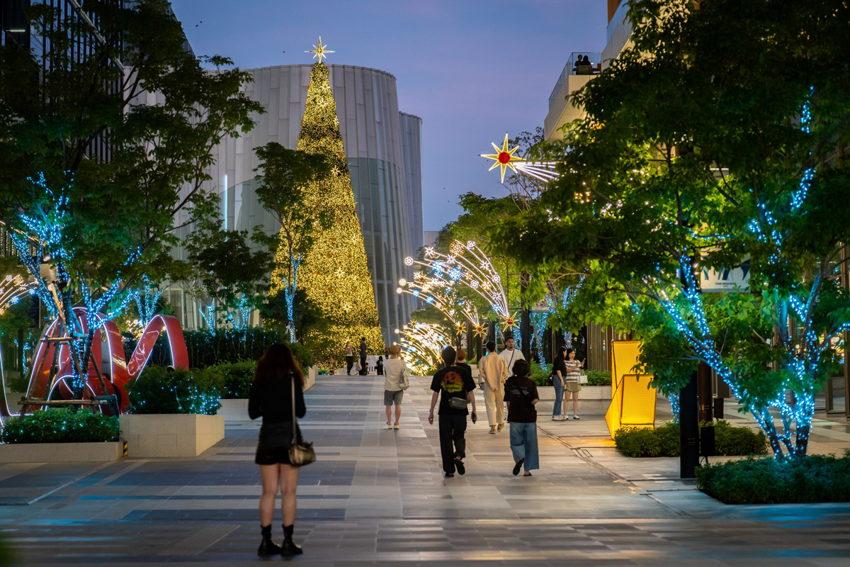 – One Bangkok Boulevard: พบกับไฮไลท์ที่เป็นซิกเนเจอร์ของเรา “ต้นคริสต์มาสเจดีย์สน” (Enchanted Pagoda Christmas Tree) สุดตระการตาที่ผสานสถาปัตยกรรมไทยเข้ากับจิตวิญญาณแห่งคริสต์มาสอย่างลงตัว ฐานของต้นคริสต์มาสสร้างสรรค์จากแรงบันดาลใจของสถาปัตยกรรมและย่านสำคัญในกรุงเทพฯ ทั้งความงามสง่าของย่านเมืองเก่า เสน่ห์อันคลาสสิกของตึกแถวเยาวราช ความขรึมขลังของหัวลำโพง และชีวิตชีวาของย่านสีลม เรียงร้อยเป็นเรื่องราว อยู่ ณ หัวใจของมหานครแห่งนี้ จากนั้นก้าวเดินเข้าสู่ ‘Boulevard of Wonderful Light’ ทางเดินแห่งแสงดาวที่เปล่งแสงประกายระยิบระยับ นำพาทุกคนเข้าสู่อาณาจักร Onedertale Christmas พร้อมตื่นตาไปกับ “ป่าหิมะแห่งเวทย์มนต์” (The Magical Frosted Forest) ที่ซึ่งเหล่าสัตว์มหัศจรรย์จากทั้งในตำนานของไทย และเรื่องเล่าต่างๆ อาทิ กินนร-กินรี ช้าง หงส์ พญานาค ไปจนถึงแมวไทย พากันออกมาเริงระบำในค่ำคืนแห่งความสุขใจ