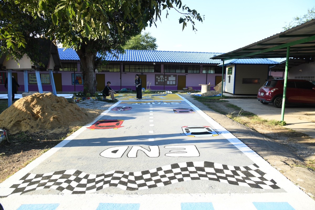 สำหรับกิจกรรมในครั้งนี้ ศุภาลัยร่วมสนับสนุนงบประมาณ 20,000 บาท พร้อมจัดเตรียมอุปกรณ์ทาสี และส่งทีมวิศวกรลงพื้นที่ให้คำแนะนำด้านการปรับปรุงพื้นที่ รวมถึงร่วมทำกิจกรรมเคียงข้างนิสิตจิตอาสา กว่า 150 คน โดยมุ่งเน้นให้เกิดประโยชน์สูงสุดทั้งในมิติ ความปลอดภัย ความเหมาะสมในการใช้งาน และการสร้างสภาพแวดล้อมที่เอื้อต่อการเรียนรู้ของเด็ก ๆ ทั้งนี้ กิจกรรมได้ร่วมปรับปรุงพื้นที่สำคัญของโรงเรียน อาทิ การปรับถนนทางเดินให้เป็น สนาม BBL (Brain-Based Learning) ซึ่งเป็นพื้นที่กิจกรรมที่ส่งเสริมพัฒนาการเด็กผ่านการเคลื่อนไหวและการเรียนรู้ รวมถึงการทาสีผนังอาคารอเนกประสงค์ และการปรับปรุงเครื่องเล่นกับม้านั่งในพื้นที่ส่วนกลาง เพื่อให้พื้นที่โดยรอบสวยงาม ปลอดภัย และพร้อมใช้งาน
