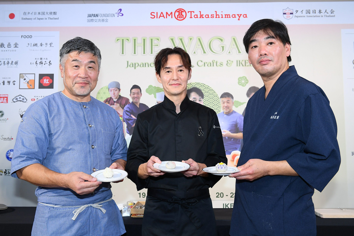 สำหรับบรรยากาศในงาน “THE WAGASHI Japanese Foods, Crafts & IKEBANA”  เริ่มจากการมอบความพิเศษ ให้กับผู้ที่หลงใหลในเสน่ห์ของขนมหวาน ด้วยการนำขนมสไตล์ญี่ปุ่นดั้งเดิมขนานแท้ จากร้านขนมชื่อดังทั่วประเทศญี่ปุ่นมาให้ช็อปท่ามกลางกลิ่นอายของวัฒนธรรมญี่ปุ่นสุดอบอุ่น ระหว่างวันนี้ถึง 30  พฤศจิกายน 2568 ที่ชั้น G และ ชั้น 4 สยาม ทาคาชิมายะ ณ ไอคอนสยาม  สุดเอ็กซ์คูลซีฟ!! กับการลิ้มลองความอร่อยกับขนมต้นตำรับสไตล์ดั้งเดิม “WAGASHI” (วากาชิ)   ขนานแท้!!   ซึ่งได้รับการจดทะเบียนศิลปะและขั้นตอนการทำขนมเป็นมรดกภูมิปัญญาทางวัฒนธรรม จากการรังสรรค์เมนูสุดครีเอท   โดย 7 เชฟ จาก  7 ร้านดัง ต้นตำรับขนานแท้จากประเทศญี่ปุ่นเพื่อวาระครบรอบ 7 ปี เท่านั้น!!  นำโดย ฮิโรโมริ อุชิดะ จากร้าน “กันยูโด” จังหวัดชิสึโอกะ, โนโบรุ  อิวาสะ จากร้าน “ชิโรเฮ โรโฮ” จังหวัด  ชิกะ, โยชิทาโร่ ฮานาอิ จากร้าน “คาเมยะ โยชิฮิโระ” จังหวัดไอจิ, ยาสึฮิโระ ฮิคิอามิ จากร้าน “ฮิคิอามิ