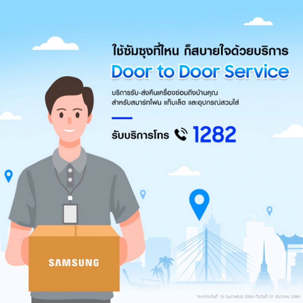 การซื้อสินค้าของซัมซุงจะกลายเป็นเรื่องง่ายกว่าที่เคย เพียงแค่คลิกเข้าไปที่ samsung.com ก็สามารถเพลิดเพลินกับหลากหลายผลิตภัณฑ์ได้ตามที่ต้องการ รวมทั้งยังไม่ต้องกังวลกับค่าใช้จ่ายเพิ่มเติม เพราะสินค้าทุกชิ้น ไม่ว่าจะเป็นสมาร์ทโฟน หรือเครื่องใช้ไฟฟ้าก็มาพร้อมกับบริการจัดส่งและติดตั้งฟรี โดยไม่มีค่าใช้จ่ายพร้อมให้บริการครอบคลุมทุกพื้นที่ ไม่จำกัดระยะทาง นอกจากนี้ ซัมซุงยังคำนึงถึงความปลอดภัยของผู้บริโภคเป็นหลัก โดยมีมาตรการในการตรวจคัดกรองอุณหภูมิพนักงานและความพร้อมของอุปกรณ์ก่อนเริ่มงานทุกครั้ง และพนักงานจะสวมอุปกรณ์ป้องกัน ไม่ว่าจะเป็น หน้ากากอนามัย เฟซชิลด์ ถุงมือ และถุงครอบรองเท้าตลอดระยะเวลาที่ให้บริการ รวมถึงล้างมือด้วยเจลแอลกอฮอล์ก่อนทำการหยิบจับหรือเคลื่อนย้ายสินค้าทุกครั้ง ตลอดจนการให้บริการด้วยการเว้นระยะห่างระหว่างพนักงานและลูกค้าอย่างน้อย 2 เมตร พร้อมดูแลทำความสะอาดในทุกขั้นตอนการทำงาน