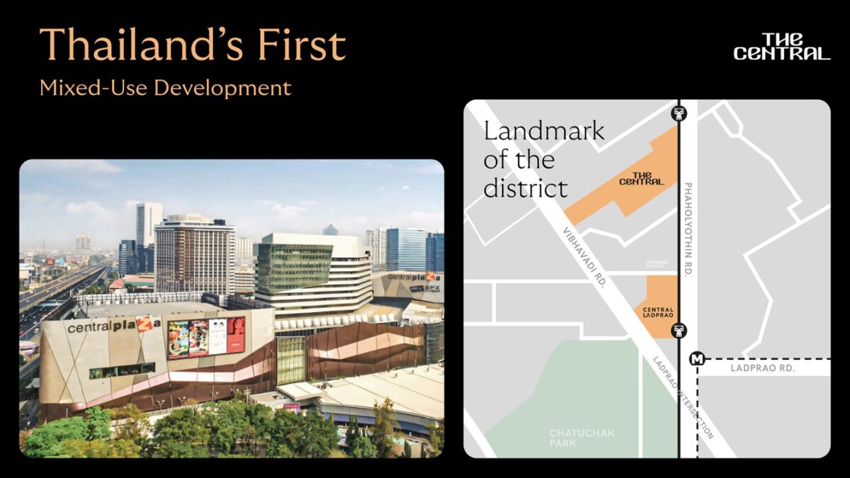 – พหลโยธินมีศักยภาพเทียบชั้นย่านราชประสงค์: ในฐานะย่านที่เป็นทำเลยุทธศาสตร์เหมาะกับการพัฒนาโครงการระดับ World-Class ได้แก่ 1) Transit-Oriented Development: เติบโตบนฐานโครงสร้างคมนาคมหลัก ทั้ง BTS, MRT และถนนสายสำคัญ เป็นจุดเชื่อมต่อการใช้ชีวิต–การทำงาน–การเดินทาง, 2) High-Density & Mixed Demand: รายล้อมด้วยดีมานด์คุณภาพสูง ทั้งที่อยู่อาศัยระดับกลาง–บน อาคารสำนักงาน โรงแรม และสถาบันการศึกษา และ 3) Anchor of Flagship Brands: เช่นเดียวกับที่ centralwOrld เป็น ‘Flagship Landmark’ ของราชประสงค์ ดังนั้น The Central พหลโยธิน จะเป็น ‘The Landmark of Northern Bangkok’ ที่ขับเคลื่อนการเติบโตของย่าน