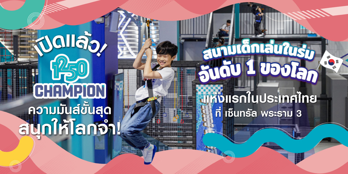 บริษัท เซ็นทรัลพัฒนา จำกัด (มหาชน) ผู้นำศูนย์การค้าอันดับหนึ่งของไทย เดินหน้าตอกย้ำศักยภาพผู้นำ “No.1 Family & Fun Destination” เปิดตัว ‘CHAMPION 1250’ สนามเด็กเล่นในร่มอันดับ 1 ของโลกจากประเทศเกาหลีใต้ ที่ยกทัพเครื่องเล่นกว่า 20 ชนิด พร้อมแนวคิด Play to Grow ให้เด็กๆ ได้ปลดปล่อยพลัง ปีนป่าย กระโดด วิ่ง และใช้ทุกประสาทสัมผัสอย่างเต็มที่ เสริมทักษะและพัฒนาการครบด้านสำหรับเด็กวัย 5–12 ปี บนพื้นที่กว่า 1,500 ตร.ม. ณ ชั้น 6 เซ็นทรัล พระราม 3 ศูนย์การค้าที่ตอบโจทย์ Urban Living ทุกเจเนอเรชัน พร้อมเปิดประสบการณ์ให้เด็กๆ ระเบิดพลัง แล้ววันนี้