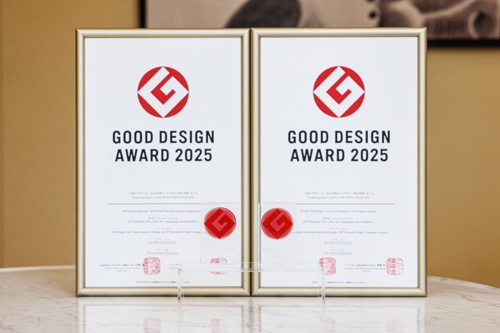เอพี ไทยแลนด์ สร้างประวัติศาสตร์ ครั้งแรกของอสังหาฯ ไทยหนึ่งเดียว ที่คว้า 2 รางวัลดีไซน์ที่ดีที่สุดระดับโลก GOOD DESIGN AWARD ตอกย้ำความเป็นเลิศด้านการออกแบบ เพื่อคุณภาพชีวิตระดับสากล
