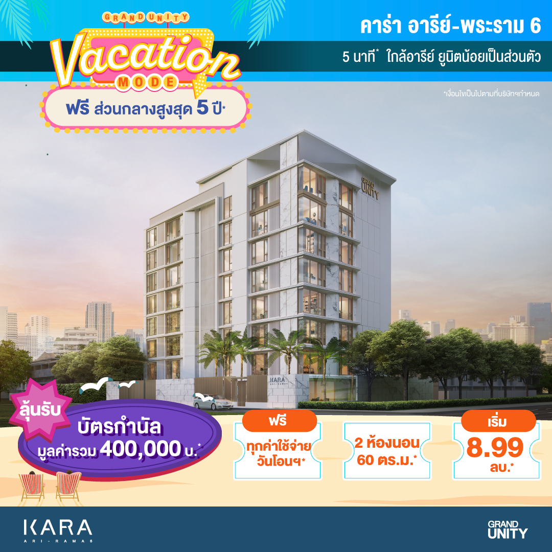 แกรนด์ ยูนิตี้ อัดโปรแรง ชิงกำลังซื้อโค้งสุดท้าย ส่งแคมเปญ “VACATION MODE เปิดโหมดพัก รับดีลเด็ดส่งท้ายปี” เริ่มต้นเพียง 1.69 ล้านบาท* ดีเดย์ 13 – 14 ธ.ค.นี้