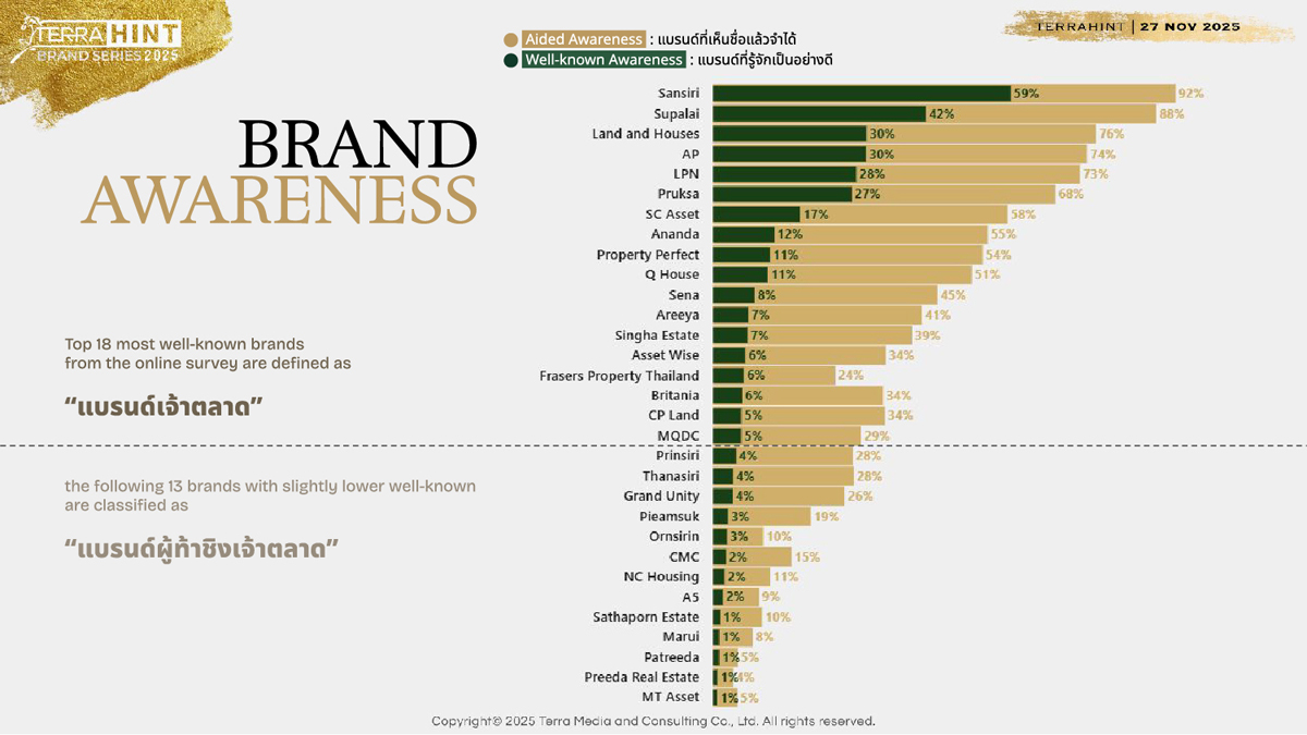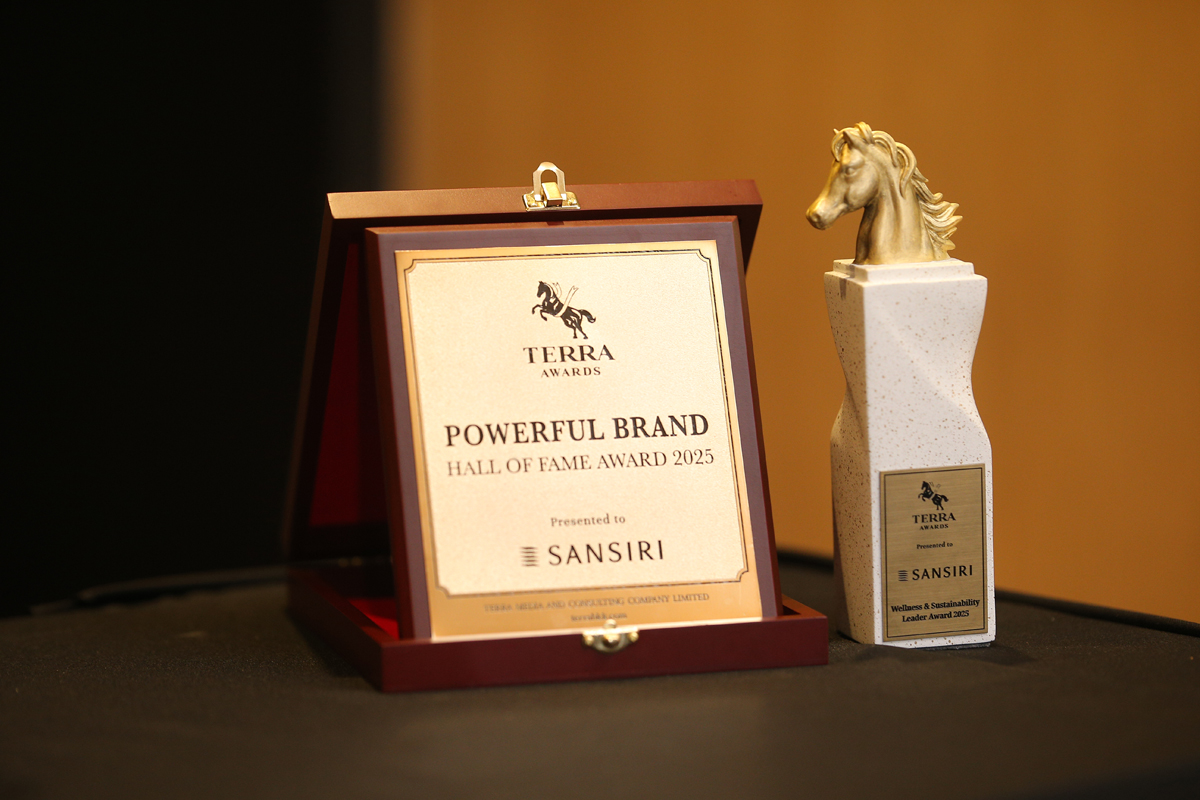บริษัท แสนสิริ จำกัด (มหาชน) ตอกย้ำความเป็นผู้นำวงการอสังหาริมทรัพย์ไทย ด้วยการคว้า 2 รางวัลสูงสุดแห่งปีจากเวที Terra BKK เวทีสัมมนาด้านอสังหาริมทรัพย์ประจำปี “TerraHint Brand Series 2025 ภายใต้ธีม The Wellness Blueprint #อยู่ดีมีสูตร โดยแสนสิริคว้ารางวัลสูงสุดของเวทีปีนี้ “Hall of Fame” ที่สะท้อนถึงความสำเร็จในการสร้างแบรนด์ที่ทรงพลังในธุรกิจอสังหาริมทรัพย์ หรือ “The Most Powerful Real Estate Brand” ต่อเนื่องมาตลอด 7 ปี รวมทั้งในปีนี้ซึ่งครองแชมป์เป็นปีที่ 8 (2017 – 2025) โดดเด่นด้วยคะแนนยอดเยี่ยมใน 7 มิติสำคัญ ทั้งความหลากหลายของโครงการ คุณภาพที่เป็นที่ยอมรับ สร้างความแตกต่างในตลาด Brand Love และเป็นแบรนด์เป็นที่นิยมในไทย