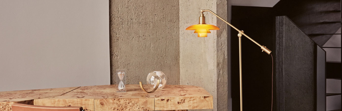 โคมไฟตั้งพื้น รุ่นลิมิเต็ด เอดิชั่น PH 3/2 โคมแก้วสีอำพัน การผสมผสานเอกลักษณ์แห่งงานศิลปะของ Poul Henningsen