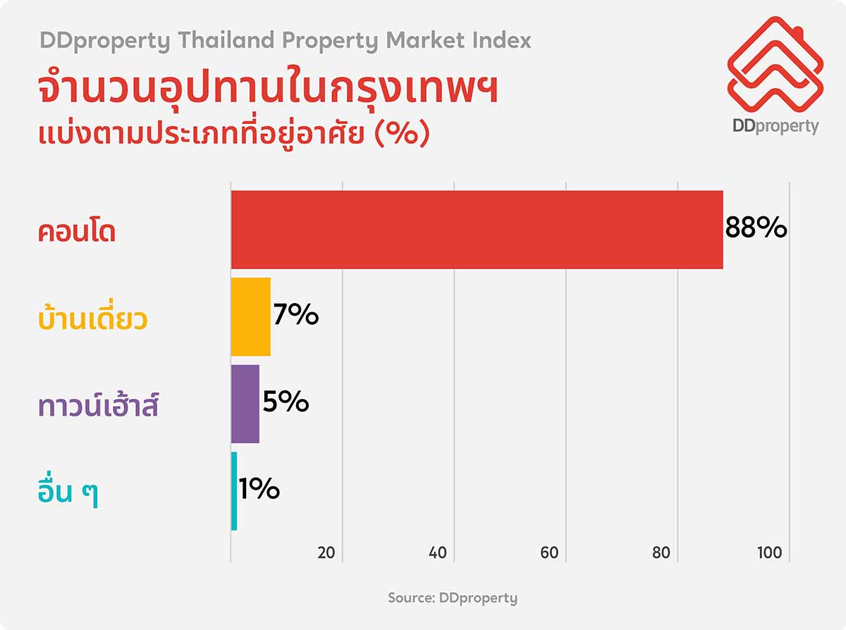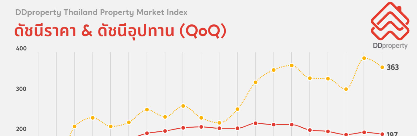 ข้อมูลล่าสุดจากรายงาน DDproperty Thailand Property Market Index เผยดัชนีราคาที่อยู่อาศัยในกรุงเทพฯ ปรับตัวลดลงมาอยู่ที่ 197 จุด จาก 201 จุด หรือลดลง 2% จากไตรมาสก่อน ถือเป็นดัชนีราคาที่ต่ำที่สุดในรอบ 14 ไตรมาส (นับตั้งแต่ไตรมาสที่ 2 ปี 2560) หลังจากเคยมีแนวโน้มฟื้นตัวในช่วงคลายล็อกดาวน์จากการแพร่ระบาดฯ รอบแรก คาดแนวโน้มราคาอสังหาฯ และอุปทานจะลดลงต่อเนื่องจากไตรมาส 4 ปีที่แล้ว และยังไม่ปรับตัวเพิ่มขึ้นในช่วงครึ่งปีแรก หวังวัคซีนต้านไวรัสโควิด-19 และมาตรการเยียวยาเพิ่มเติมจากภาครัฐช่วยกระตุ้นให้ตลาดอสังหาฯ กลับมาฟื้นตัวเร็วขึ้น