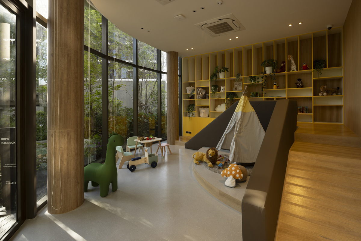จุดเด่นของโนเบิล ครีเอท คือพื้นที่สีเขียวขนาดใหญก่ ว่า 5 ไร่ ใจกลางโครงการ ที่มีอาคารพักอาศัยล้อมรอบ ถูกออกแบบมาในคอนเซปต์ Forest Habitat ด้วยการจำลองความเป็นระบบนิเวศ และทุกองค์ประกอบของธรรมชาติที่เอื้อต่อการใช้ชีวิตอยู่ในทุกมุมของโครงการ ไม่ว่าจะเป็นพืชพรรณต้นไม้ ลำธาร สวนดอกไม้ หลากหลายรูปแบบ เพื่อให้ทุกวันของการใช้ชีวิตเต็มไปด้วยความสดชื่น ผ่อนคลาย และใกล้ชิดธรรมชาติอย่างแท้จริง เชื่อมั่นว่าการเปิดตัวในครั้งนี้จะได้รับการตอบรับที่ดีจากกลุ่มลูกค้าเรียลดีมานด์ที่มองหาที่อยู่อาศัยที่จะมอบสมดุลในการใช้ชีวิต และคุณภาพชีวิตที่ดีได้ อีกทั้งกลุ่ม Pet Parents ที่มองหาคอนโดเลี้ยงสัตว์ รวมทั้งกลุ่มนักลงทุนที่มองหาความคุ้มค่าในโครงการที่มีราคาจับต้องได้บนทำเลระดับลักชัวรี่”