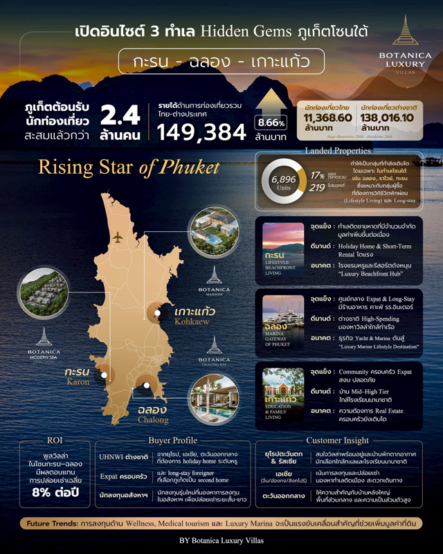 “โบทานิก้า ลักซูรี่ วิลล่า” เผยอสังหาฯ ภูเก็ตโซนใต้มาแรง! เปิดทำเลดาวรุ่ง “กะรน-ฉลอง-เกาะแก้ว” ชูศักยภาพแกร่ง รับเรียลดีมานด์นักลงทุน-ครอบครัวไฮเอนด์อยู่ยาว