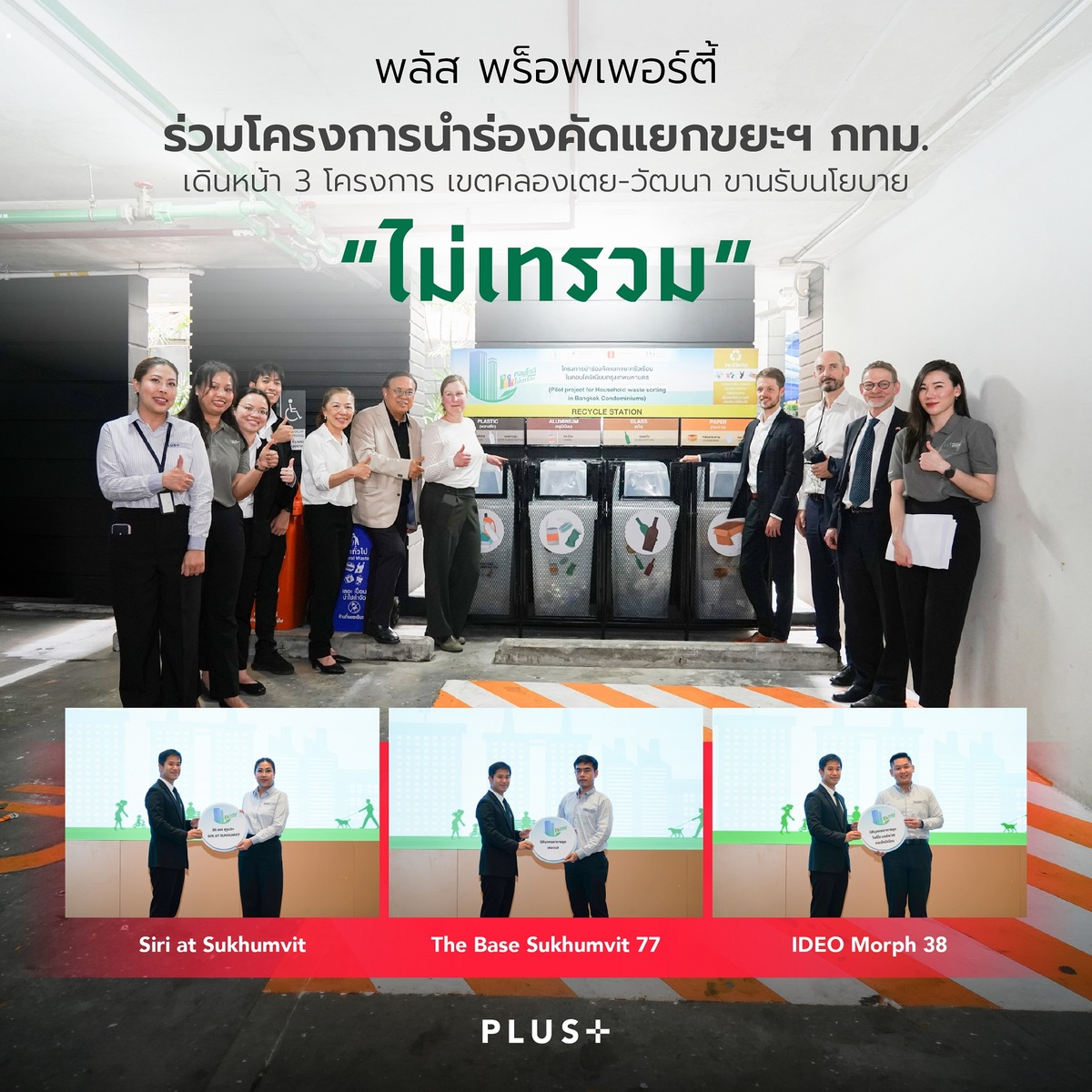 พลัส พร็อพเพอร์ตี้ ร่วมโครงการนำร่องคัดแยกขยะฯ กทม. เดินหน้า 3 โครงการแรก เขตคลองเตย-วัฒนา ขานรับนโยบาย “ไม่เทรวม”