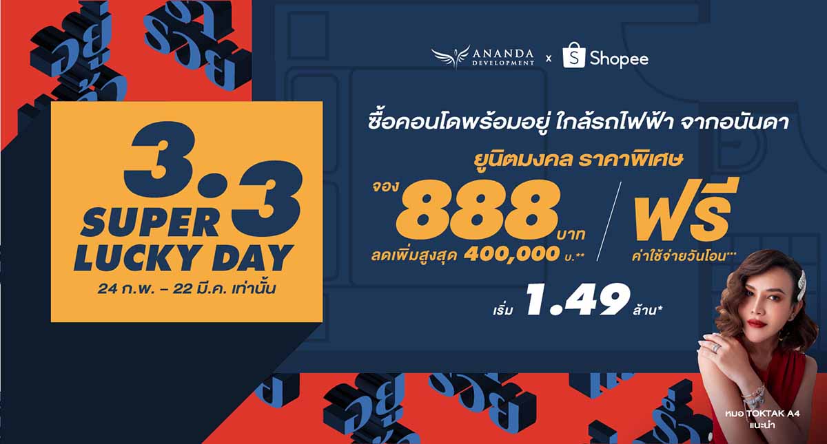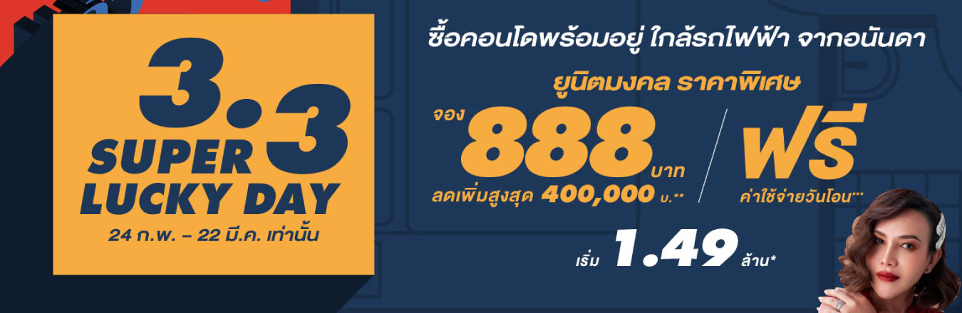 พิเศษสุด! ส่วนลดเพิ่มอีกถึง 400,000 บาท* ฟรี ค่าใช้วันโอนฯ และตลอดเดือนมี.ค.นี้ จ่ายแค่ 33 บาท รับคูปองส่วนลดสูงสุดถึง 50,000 บาทจาก 10 คอนโดใกล้รถไฟฟ้า พร้อมอยู่ และรับฟรี Grab Code 200 บาท เพื่อใช้เดินทางไปยังโครงการ