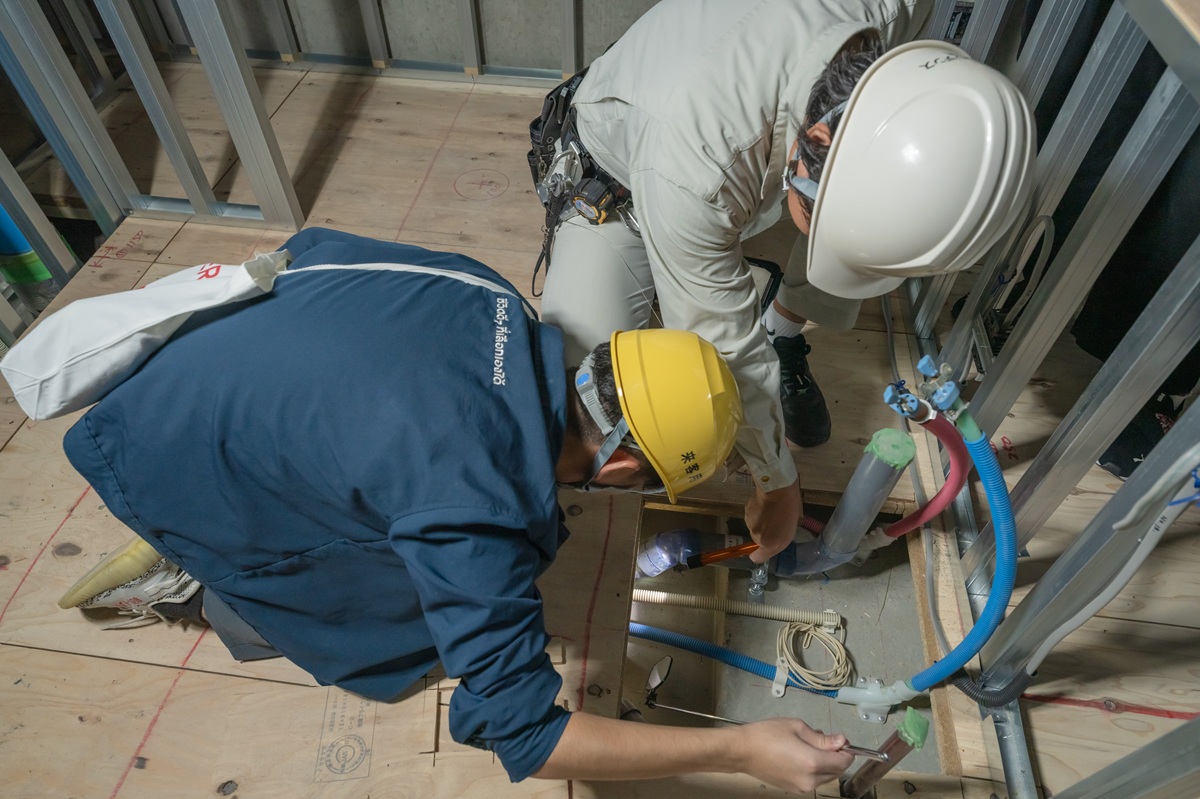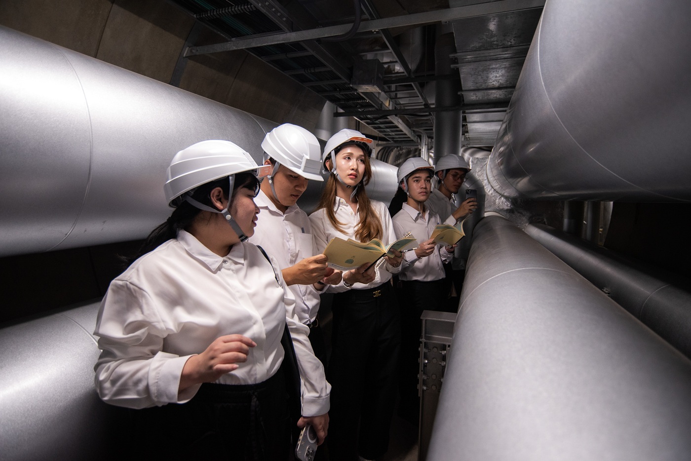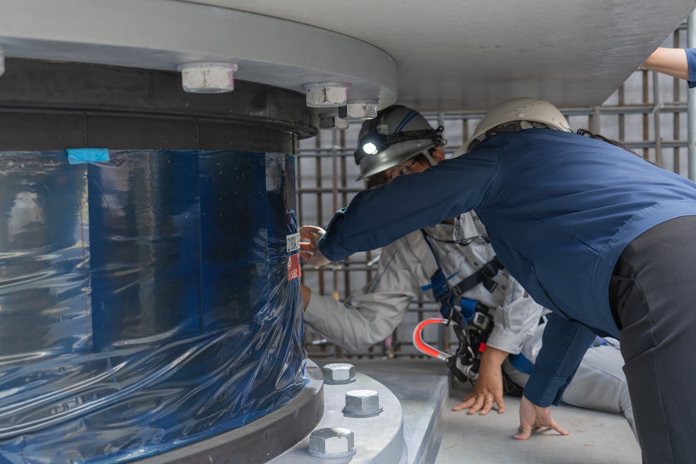 2. การก่อสร้างคอนโดมิเนียมที่ใช้ระบบ Seismic Isolation Structure (ระบบโครงสร้างแยกแผ่นดินไหว) ในขนาดที่ใหญ่และมากที่สุด ตัวแทนนิสิตนักศึกษาโครงการ AP OPEN HOUSE รุ่นที่ 10 ได้รับโอกาสพิเศษในการศึกษาเทคโนโลยีนี้อย่างใกล้ชิด ซึ่งช่วย ดูดซับแรงสั่นไหวและลดความรุนแรงต่อผู้อยู่อาศัยในอาคารสูง การออกแบบดังกล่าวเป็นมากกว่านวัตกรรมด้านโครงสร้าง แต่เป็นการส่งมอบความสบายใจและความมั่นใจสูงสุด ให้แก่ผู้อยู่อาศัยในคอนโดมิเนียมอาคารสูงในประเทศญี่ปุ่น ซึ่งเป็นประเทศที่มีการบันทึกเหตุการณ์แผ่นดินไหวมากที่สุดแห่งหนึ่งของโลก การได้สัมผัสกับมาตรฐานความปลอดภัยระดับนี้ แม้ว่าบริบทด้านภัยพิบัติของไทยจะแตกต่างกัน แต่สะท้อนให้เห็นถึงความมุ่งมั่นของกลุ่มบริษัท มิตซูบิชิ เอสเตท ในการเป็นผู้นำด้านคุณภาพ ที่เริ่มต้นจากความปลอดภัยสูงสุด ซึ่งหลักคิดนี้ถูกนำไปประยุกต์ใช้กับการพัฒนาอสังหาฯในทุกพื้นที่ที่เข้าไปร่วมลงทุน โดยปรับให้เข้ากับบริบทที่แตกต่างกัน