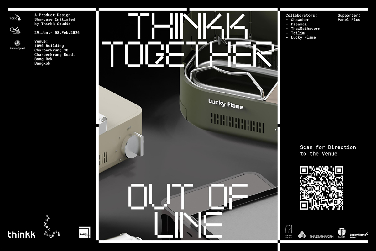 โดย THINKK Studio ได้นำผลิตภัณฑ์ Lucky Flame “เตาแก๊สปิคนิค OOF (Out Of Flame)” มีแนวคิดพัฒนาต่อยอดมาจากเตาแก๊สเอาท์ดอร์ เข้าร่วมจัดแสดงในคอลเลกชัน “THINKK TOGETHER 4: Out of Line” โครงการความร่วมมือระหว่างทีมออกแบบ THINKK Studio กับ 5 แบรนด์ไทยชั้นนำ เพื่อเปิดมุมมองการออกแบบนอกกรอบ สะท้อนแนวคิดการสร้างสรรค์ที่ตั้งต้นจากปัญหาจริงของผู้ผลิต และพัฒนาสู่ความเป็นไปได้ใหม่ทางธุรกิจและการใช้งาน Out Of Line คือการหลุดจากเส้นทางเดิม บางครั้งคือความผิดพลาด บางครั้งคือโอกาสที่กล้าเดินบนเส้นทางใหม่ นับเป็นนิทรรศการที่ชวนทุกคนร่วมหาความหมายของการออกแบบ ในมิติที่ไม่ใช่แค่เพื่อความสวยงาม แต่อาจขยับบางสิ่งให้เปลี่ยนไป สู่โอกาสใหม่ที่ท้าทายและสำคัญกว่าเดิม