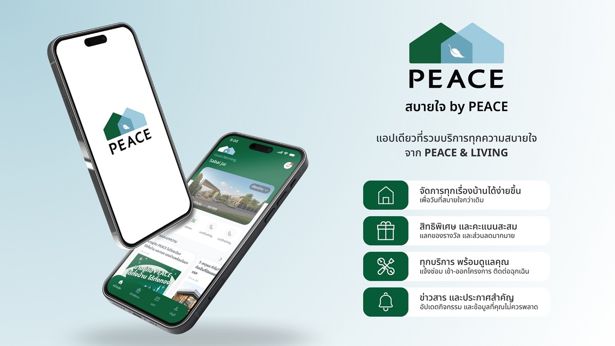 พร้อมเปิดตัวแอปพลิเคชัน “สบายใจ by PEACE” แพลตฟอร์มใหม่สำหรับลูกบ้าน ที่รวบรวมบริการเพื่อยกระดับประสบการณ์การอยู่อาศัย และสร้างความสบายใจให้ลูกบ้านอย่างครบวงจร