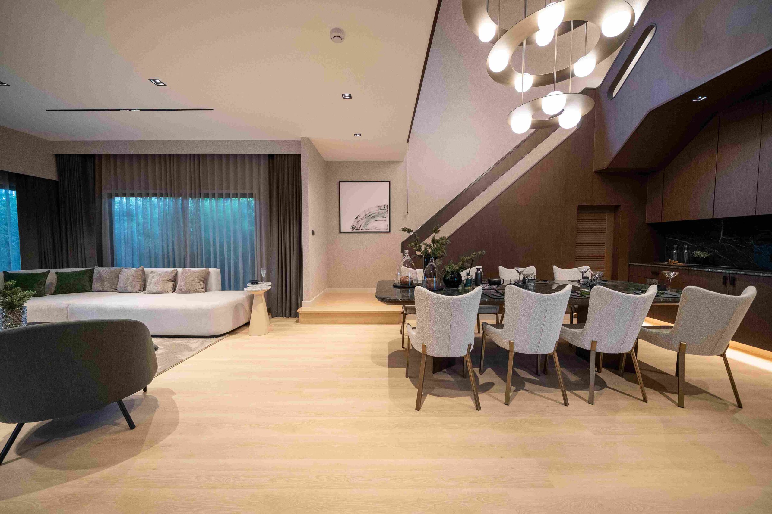 บ้านของโครงการมาพร้อมฟังก์ชันใหม่ “Vertical Form” โถงสูงกลางบ้านสูงถึง 6 เมตร ที่สร้างความรู้สึกโปร่งโล่งโอ่อ่าเหนือระดับด้วย เพิ่มความสบายตาและถ่ายเทอากาศได้ดี ทั้งยังช่วยขยายมุมมองให้บ้านดูกว้างขวางและสง่างาม พื้นที่ใช้สอยภายในออกแบบให้สามารถใช้ได้จริง ทั้งพื้นที่ส่วนกลางขนาดใหญ่ ห้องนอนแยกเป็นสัดส่วน และพื้นที่พักผ่อนที่ให้ความเป็นส่วนตัว โดยมีพื้นที่สูงสุดถึง 310 ตารางเมตร รองรับได้ทั้งครอบครัวใหญ่ และผู้ที่ต้องการพื้นที่ส่วนตัวมากขึ้น ช่วยให้ทุกคนในครอบครัวสามารถใช้ชีวิตได้อย่างลงตัว