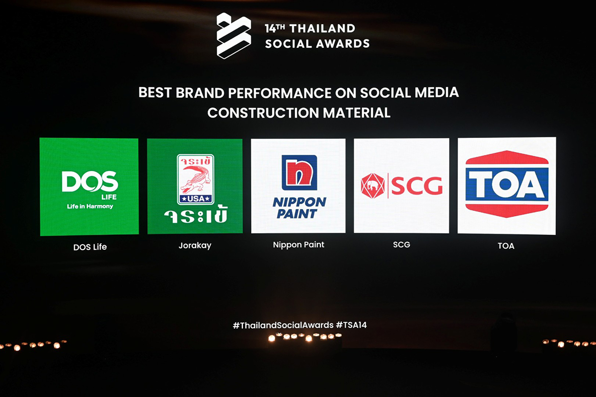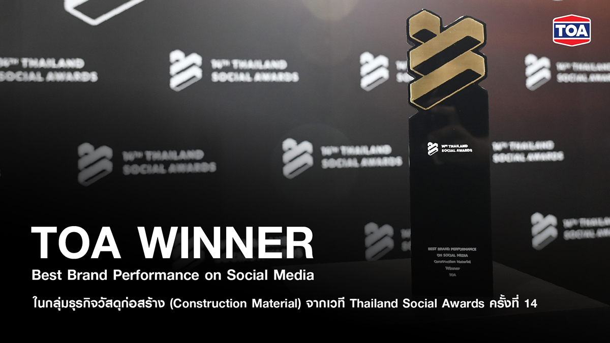 TOA ตอกย้ำเบอร์ 1 คว้ารางวัลชนะเลิศ “Best Brand Performance on Social Media” ในกลุ่มธุรกิจวัสดุก่อสร้าง จากเวที Thailand Social Awards ครั้งที่ 14