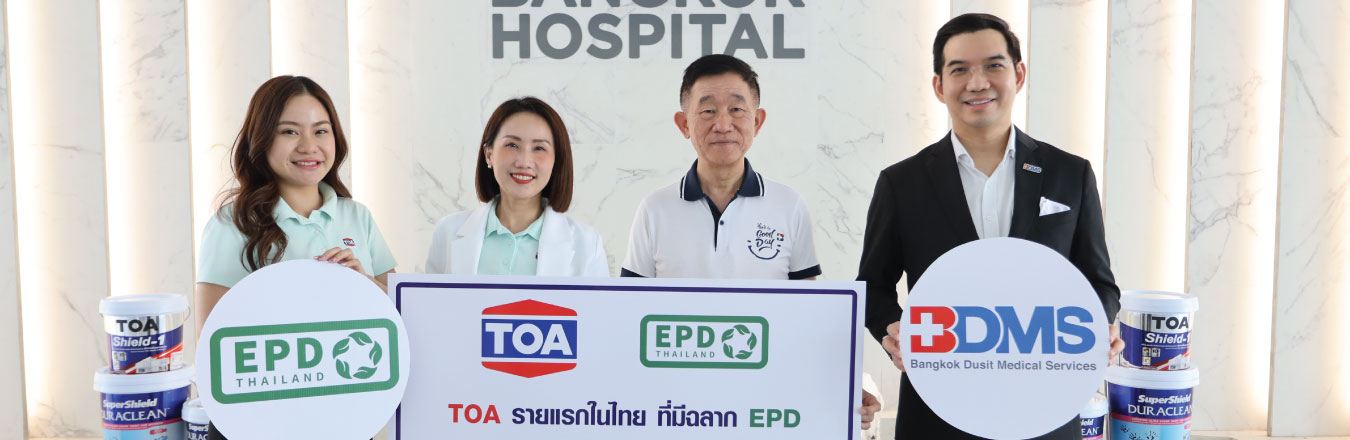 TOA ผนึกเครือโรงพยาบาลกรุงเทพ (BDMS) ตอกย้ำผู้นำรักษ์โลก สร้างมาตรฐานใหม่เลือกใช้สินค้าที่ได้ฉลาก EPD รายแรกในไทย ครอบคลุมทุกผลิตภัณฑ์สี