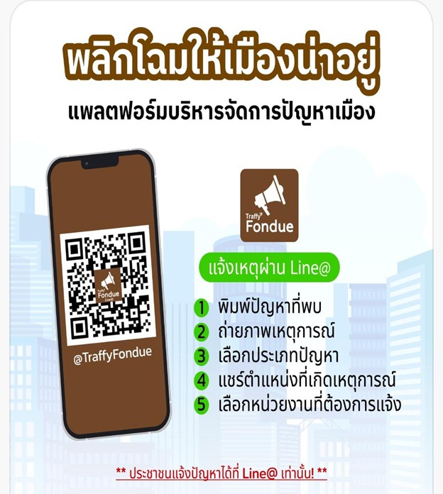 หากคุณกำลังประสบปัญหาห้องข้างๆ กลายเป็นรังนก กรุณาสแกนร้องเรียนผ่าน line ของ @TraffyFondue นี้ได้เลย