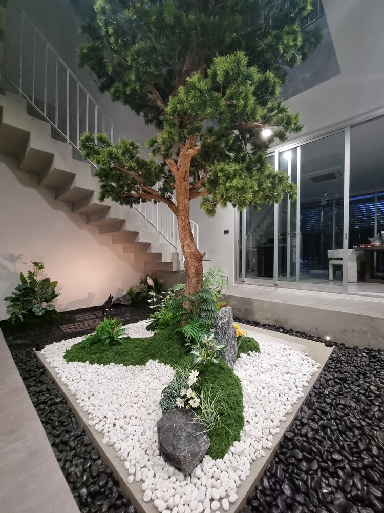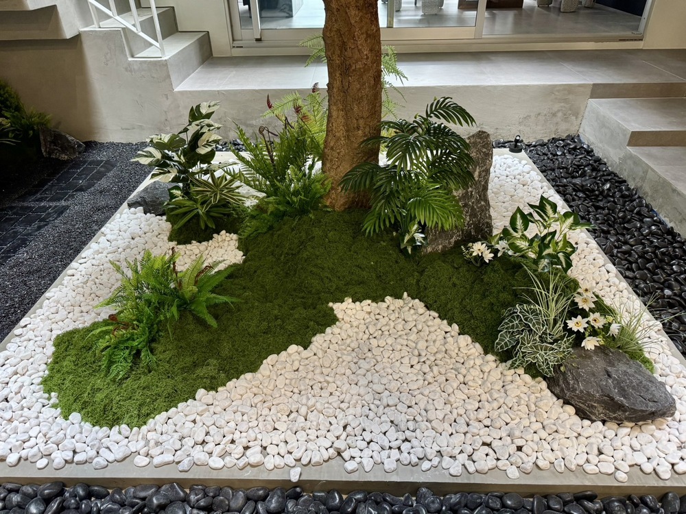ใครอยากมีพื้นที่สีเขียวในบ้าน ที่ให้ความรู้สึกสบายตาเวลามองมาที่บริเวณพื้นที่นั้น แต่ไม่อยากใช้ต้นไม้จริงและดอกไม้จริงเลยสักอย่าง เพราะกลัวในเรื่องของการดูแลรักษา ทั้งการรดน้ำ การเก็บกวาดกิ่ง ก้าน ใบ และการตัดแต่งกิ่ง หรือหากกำลังมองหา Reference การจัดสวนขนาดกะทัดรัดที่มีความเรียบแต่โก้ ใช้เวลาในการจัดไม่เยอะ และใช้งบประมาณไม่มากเกินไป สามารถทำได้เองโดยที่ไม่ต้องจ้างช่างจัดสวนแพงๆ มาให้เปลืองเงินในกระเป๋า วันนี้เราเลยจะพาไปชมการจัดสวนสีเขียวรูปแบบใหม่ที่ใช้วัสดุเทียมทั้งหมดแต่ได้สวนสวยเหมือนกับไปจ้างช่างแพงๆ และจ่ายไปเพียงแค่หลักพันเท่านั้น! มาดูกันเลย…