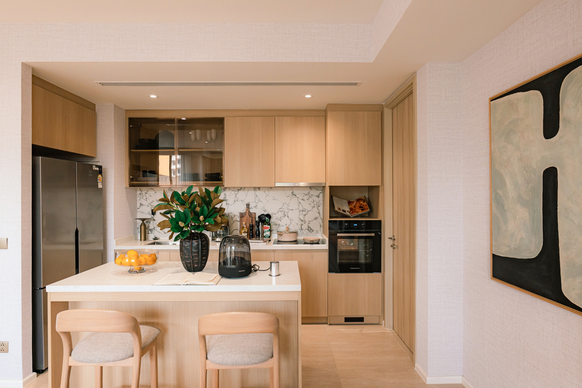 ความคุ้มค่าแรกคือการจ่ายเงินเพื่อซื้อพื้นที่ที่คุณได้ใช้งานจริงทุกตารางนิ้ว โดยโครงการมอบพื้นที่ใช้สอยกว้างขวางกว่าโครงการคอนโดทั่วไป ไม่เน้นพื้นที่ส่วนกลางรวม แต่เน้นพื้นที่ใช้สอยส่วนตัวภายในยูนิต บนความเป็นส่วนตัวสูงสุด ด้วยขนาดห้องเริ่มต้นที่ 100 ตร.ม. ไปจนถึง 170 ตร.ม. โดยเฉพาะห้องแบบ Duplex 2 ชั้น ที่ให้ความรู้สึกเหมือนอยู่บ้านอย่างแท้จริง ทุกห้องมีผนังของตนเอง no share wall เลย์เอาท์ห้องมีการแยกโซนครอบครัว (We Time) และโซนส่วนตัว (Me Time) ออกจากกันอย่างชัดเจน มาพร้อมครัวและ Appliance แบรนด์หรูอย่าง​ Kupperbusch ที่ปกติมักจะมากับคอนโดในระดับตรม.ละสองแสนบาทขึ้นไป ที่ทำอาหารได้จริง โดยมีห้องไฮไลต์ที่สำคัญคือ 2 ห้องนอน 1 ห้องอเนกประสงค์ 3 ห้องน้ำ ขนาด 140 ตรม. มีพื้นที่ Back of house พื้นที่อเนกประสงค์ในยูนิต เพื่อการจัดระเบียบชีวิตที่เหนือกว่า และครัวไทยแยกเฉพาะ ที่มอบความลงตัว ตอบโจทย์การอยู่อาศัยแบบครอบครัวที่ยั่งยืน ไม่ต้องขยับขยายเมื่อมีสมาชิกเพิ่มขึ้น
