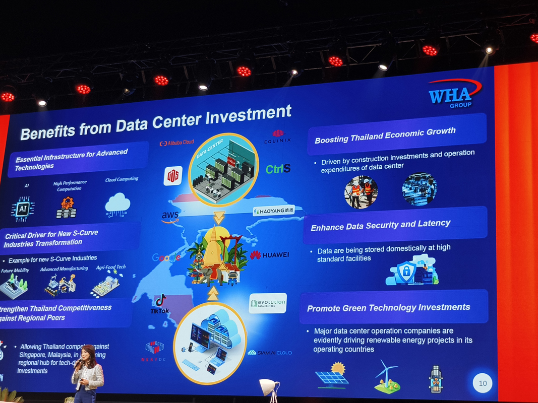 โดยมุมมองจากผู้บริหารใหญ่ในโลกธุรกิจ อย่างกลุ่ม WHA ที่เป็นเจ้าตลาดด้านนิคมอุตสาหกรรมของไทย วันนี้ไม่ได้มองเพียงเรื่องการพัฒนาอสังหาริมทรัพย์ ไม่ได้มองแค่การเพิ่มมูลค่าที่ดิน ไม่ได้มองแค่การลงทุนอสังหาแบบดั้งเดิมอีกต่อไป แต่ WHA ขยับไปสู่การเป็นบริษัทเทคโนโลยี เทรนด์ใหม่ของโลกคือ Data Center เพราะ AI ไม่ได้เกิดขึ้นลอยๆ หากแต่ต้องอาศัย infrastructure ที่แข็งแรงมหาศาลในการจัดเก็บและประมวลผลข้อมูลทุกเสี้ยววินาที ดังนั้นการสร้าง Data Center จึงไม่ใช่แค่ธุรกิจ แต่เป็นการวางรากฐานให้อนาคตของเศรษฐกิจดิจิทัลทั้งประเทศเดินหน้าได้