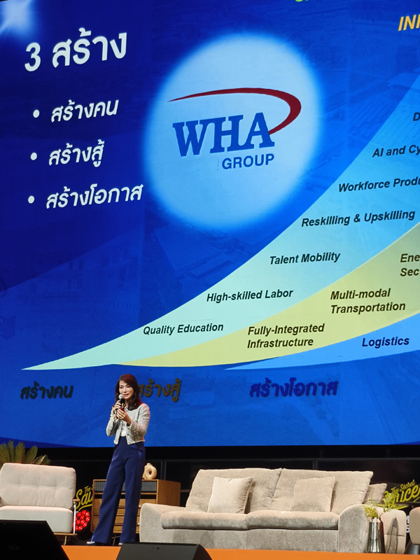 ทั้งหมดนี้คือสิ่งที่ผู้บริหาร WHA มองและเตรียมไว้ล่วงหน้า ว่า โลกธุรกิจในวันข้างหน้าจะไม่ใช่เรื่องของใครปรับตัวเร็วที่สุด แต่คือใครเตรียมโครงสร้างพื้นฐานไว้แข็งแรงที่สุด นอกจากนี้คุณจรีพรยังชวนให้ ทุกองค์กรมาเรียนรู้และช่วยกัน เพื่อเติบโตไปพร้อมกันและพัฒนาเศรษฐกิจไทยไปต่อข้างหน้า ส่วนทาง WHA จะรับหน้าที่ “3 สร้าง” ให้เอง ได้แก่ สร้างคน – สร้างสู้ – สร้างโอกาส
