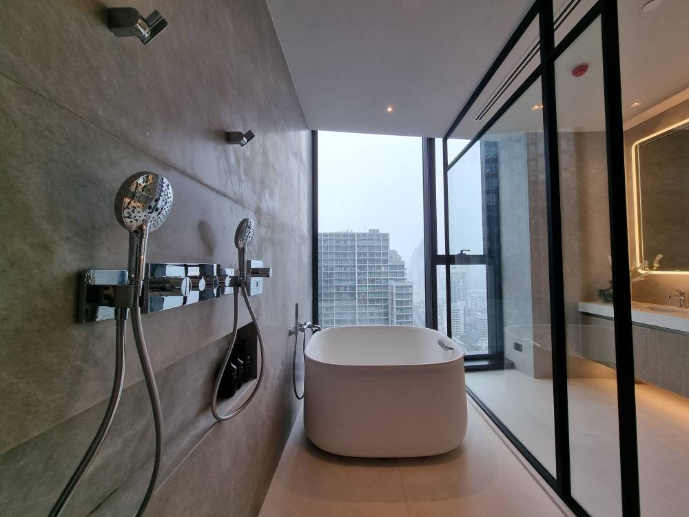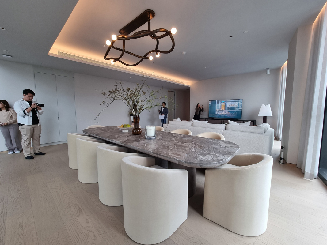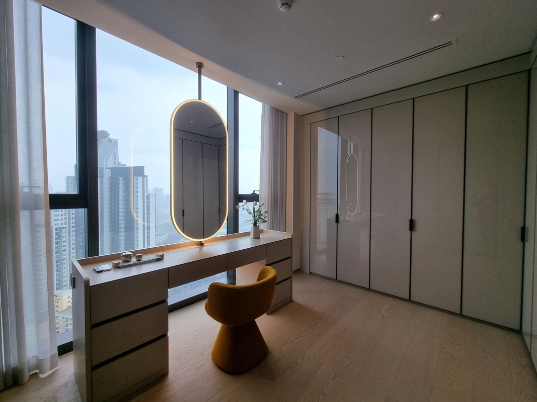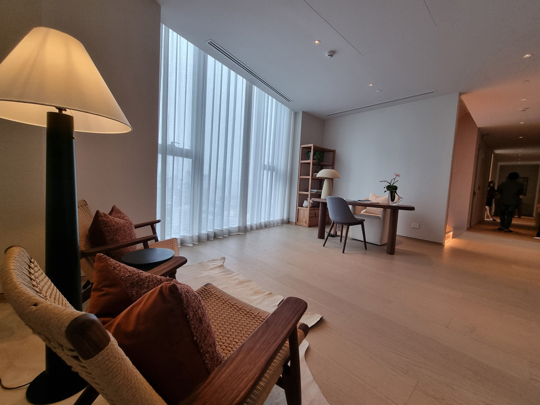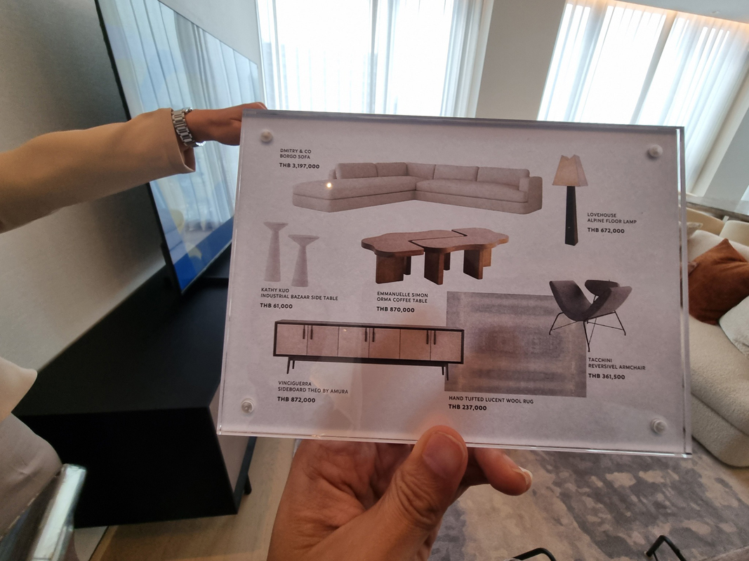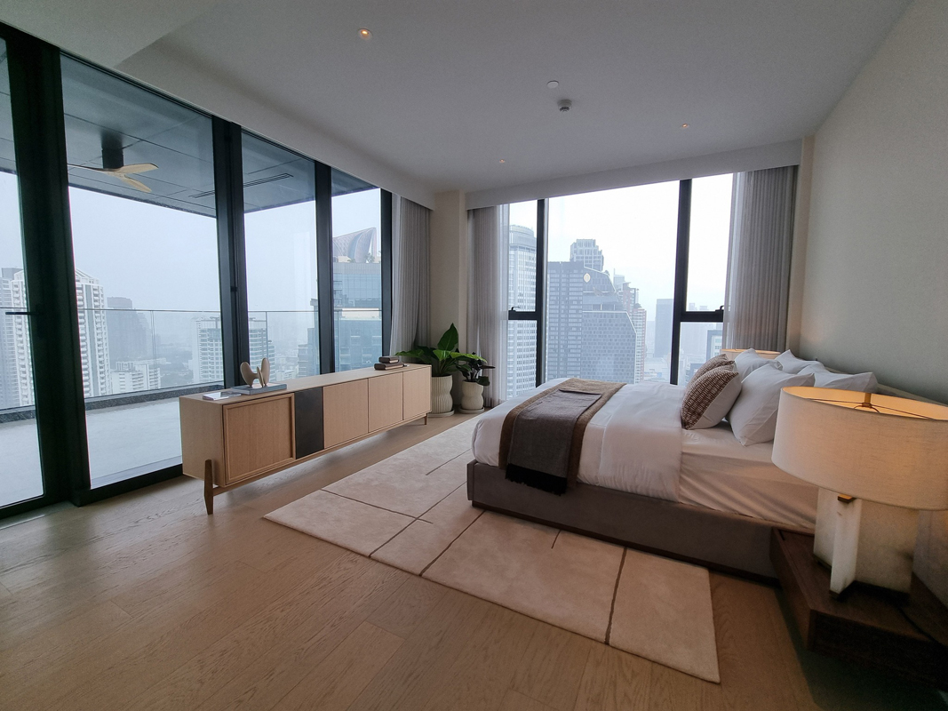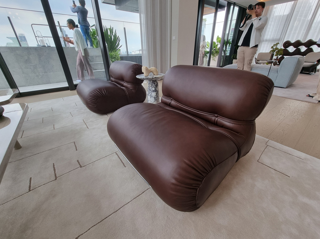 ด้วยพื้นที่ใช้สอยกว่า 765 ตารางเมตร ครอบคลุม 3 ชั้นส่วนตัว ให้ฟังก์ชัน 5 ห้องนอน 6 ห้องน้ำ แบบ Triplex Residence มอบประสบการณ์การอยู่อาศัยในแมนชั่นขนาดใหญ่บนสกายไลน์สุขุมวิท-ทองหล่อ โดยมีไฮไลต์สำคัญอย่าง Great Room ห้องนั่งเล่นขนาดใหญ่บริเวณหัวมุมอาคาร ที่เปิดรับวิวพาโนรามารอบทิศทาง เสริมด้วยเพดานสูง Double Volume ช่วยสร้างบรรยากาศโอ่อ่า โปร่งโล่ง พร้อมระเบียงกว้างและจากุซซี่กลางแจ้งที่มาพร้อมระบบควบคุมอุณหภูมิ ตอบโจทย์การพักผ่อนอย่างเหนือระดับ โดยเฟอร์ฯที่ใช้ในยูนิตนี้มีมูลค่ารวม 46 ลบ. มีหลายชิ้นที่เป็น Collectible Item โดยเฉพาะ อาทิ Dmitry & Co Borgo Sofa ราคา 3.197 ลบ., Tacchini Reversivel Armchair ราคา 361,500 บาท, Tacchini Orsola Lounge Chair ราคา 486,000 บาท, Garde Tryst Six Chandelier ราคา 890,000 บาท