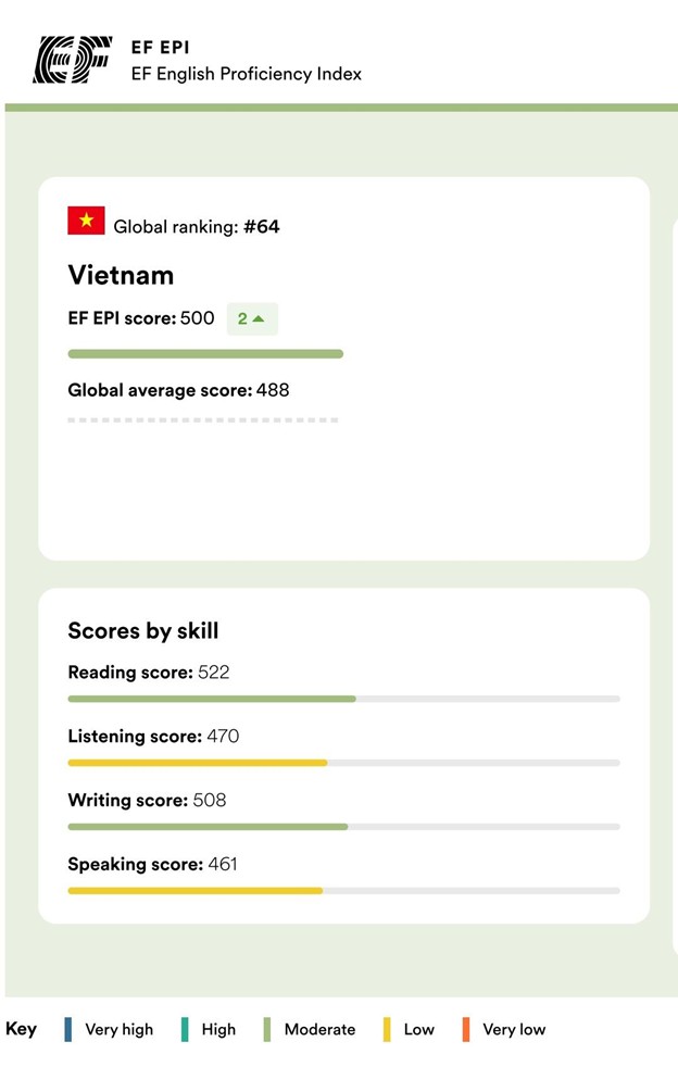 รายงานล่าสุดของ EF Education First ระบุว่าเวียดนามเลื่อนขึ้นสู่ระดับ “Moderate Proficiency” พร้อมค่าเฉลี่ยที่สูงกว่ามาตรฐานโลก แรงงานรุ่นใหม่อายุ 26–30 ปีเป็นกลุ่มที่มีคะแนนสูงที่สุด