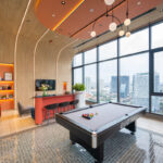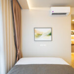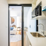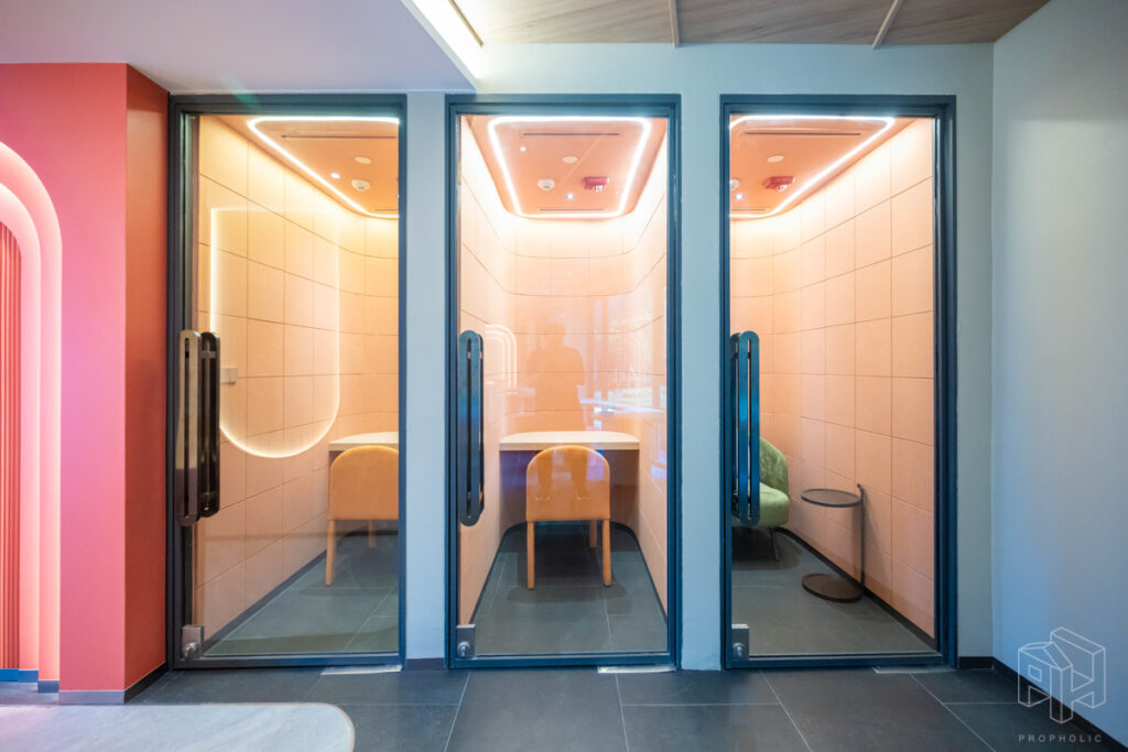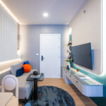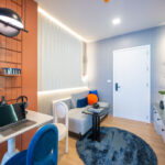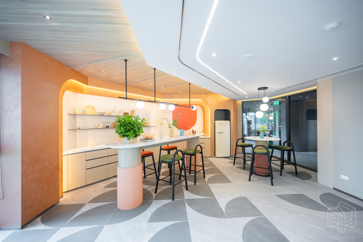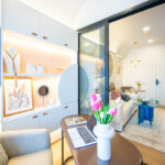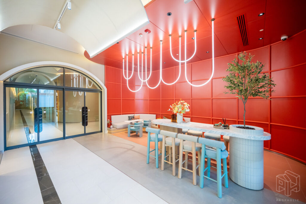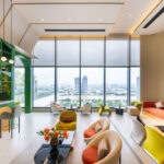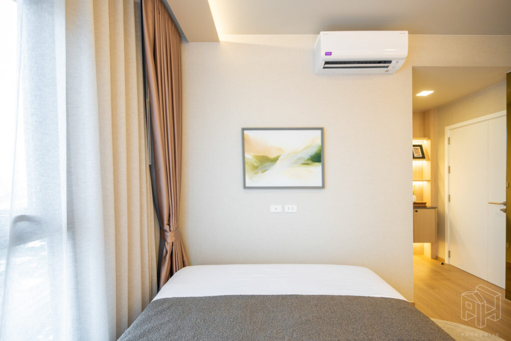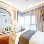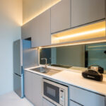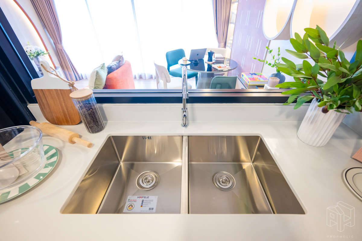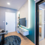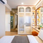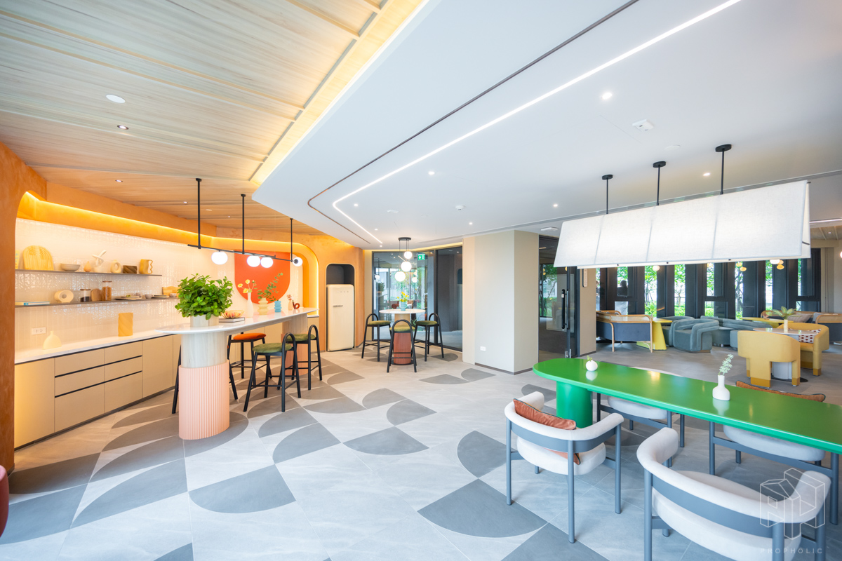 เมื่อกลับมามองที่ตัวห้องพัก ทุกยูนิตถูกออกแบบด้วยแนวคิด “Craft of Work” ที่ให้ความสำคัญกับการใช้งานจริงมากกว่าความหวือหวา พื้นที่เล็กกลับถูกจัดวางอย่างฉลาด ครัวปิดที่ทำอาหารได้จริง เพดานสูง 2.7 เมตรที่ทำให้ห้องดูโปร่ง และดีไซน์เฟอร์นิเจอร์ที่คิดตามไลฟ์สไตล์ของคนทำงานเมือง