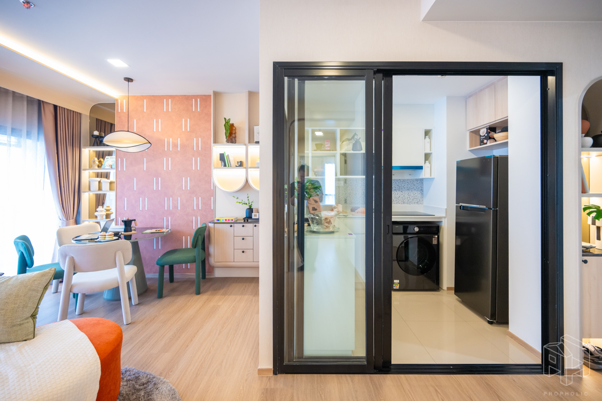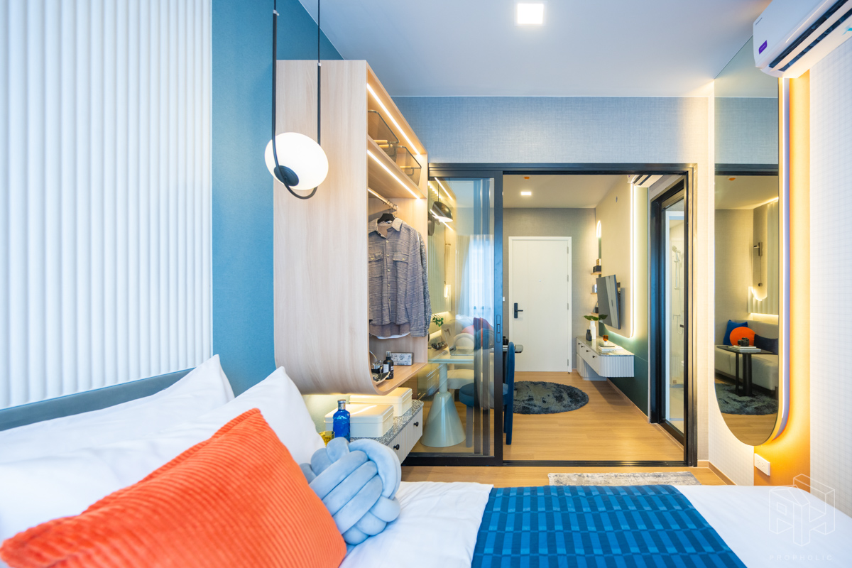 ห้องขนาดเริ่มต้นราวยี่สิบกว่า ๆ ตารางเมตรไม่รู้สึกอึดอัด คอนเซ็ปต์นี้คือสิ่งที่โครงการ Mass condo ควรจะเป็นในยุคที่ Real Demand คือหัวใจของตลาด