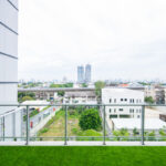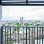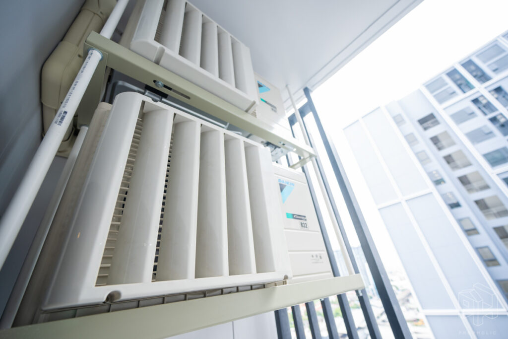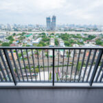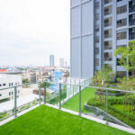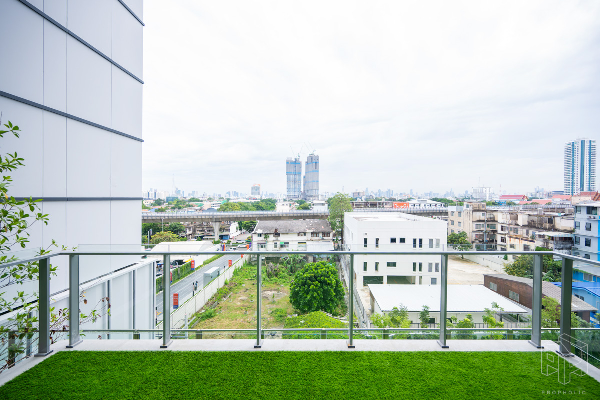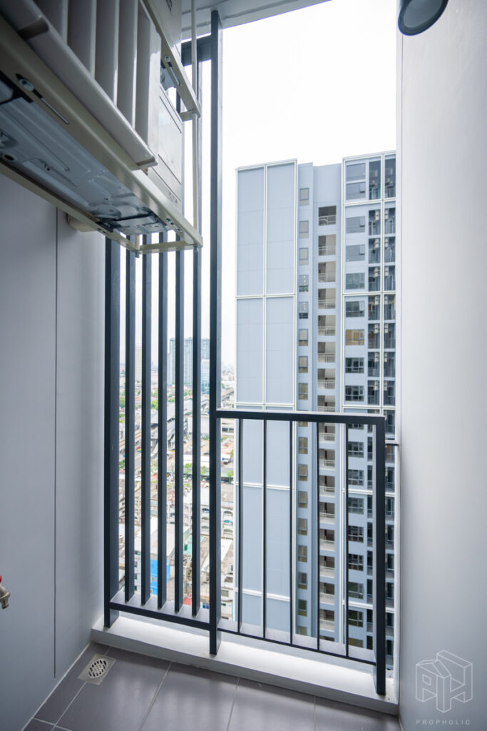 ระเบียงขนาดกำลังดี พร้อมตะแกรงบัง CDU แอร์อย่างมิดชิด ช่วยรักษาความสวยงามและใช้งานพื้นที่