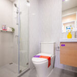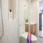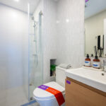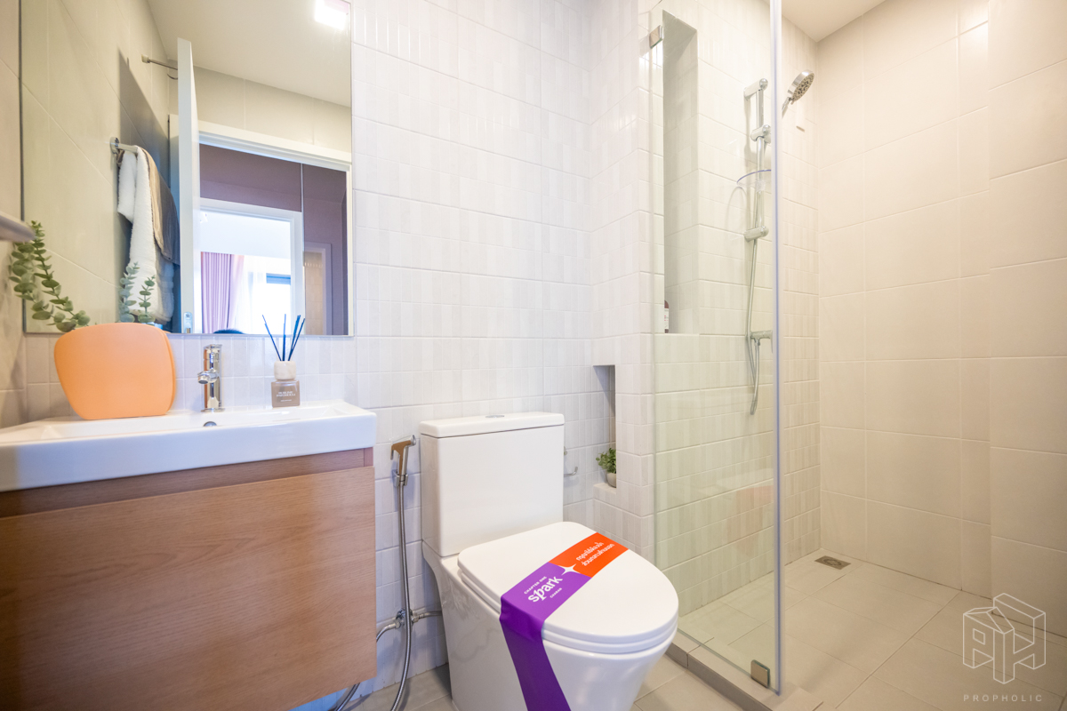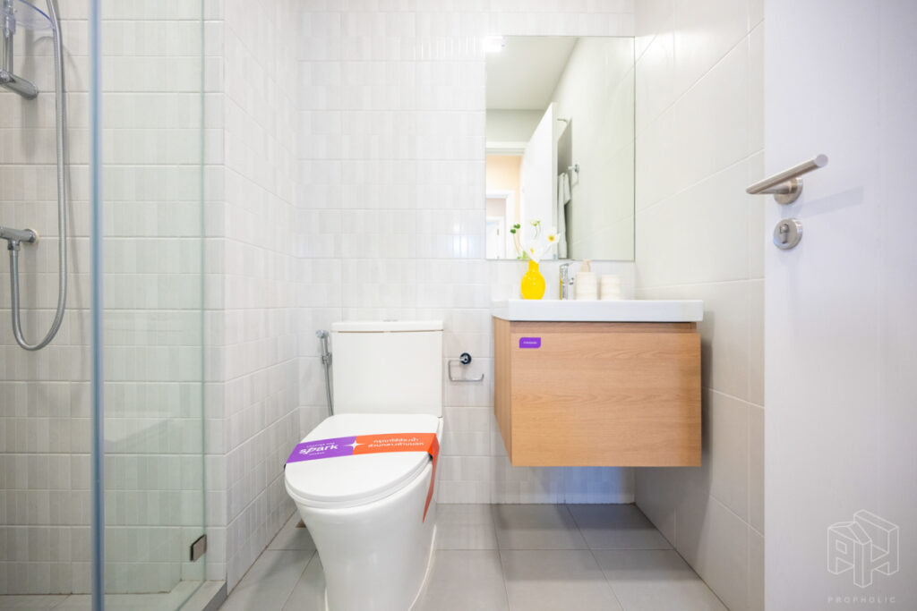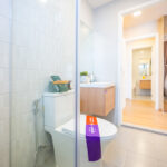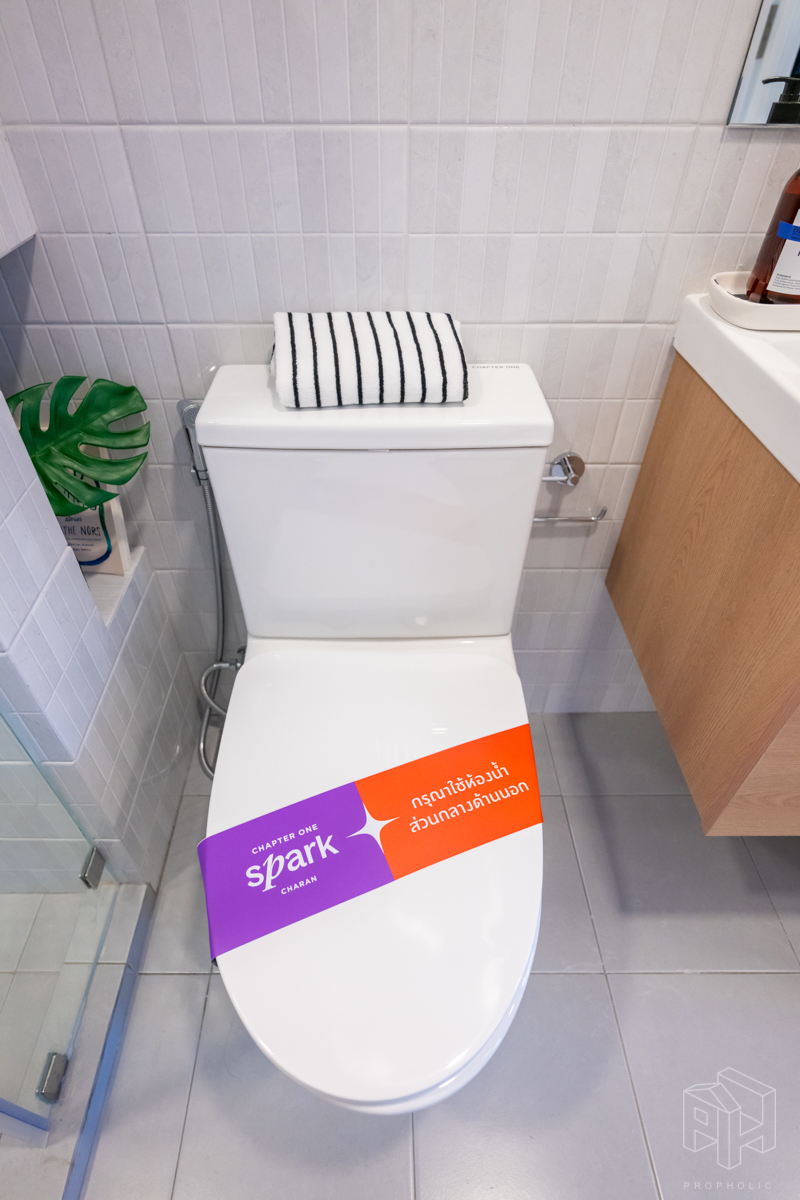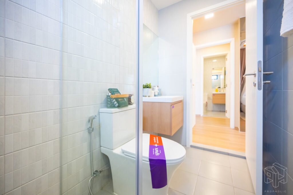 โถสุขภัณฑ์จัดตำแหน่งไม่เกะกะทางเดิน ใช้งานสะดวกแม้ในพื้นที่คอนโดขนาดกะทัดรัด