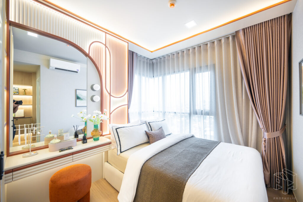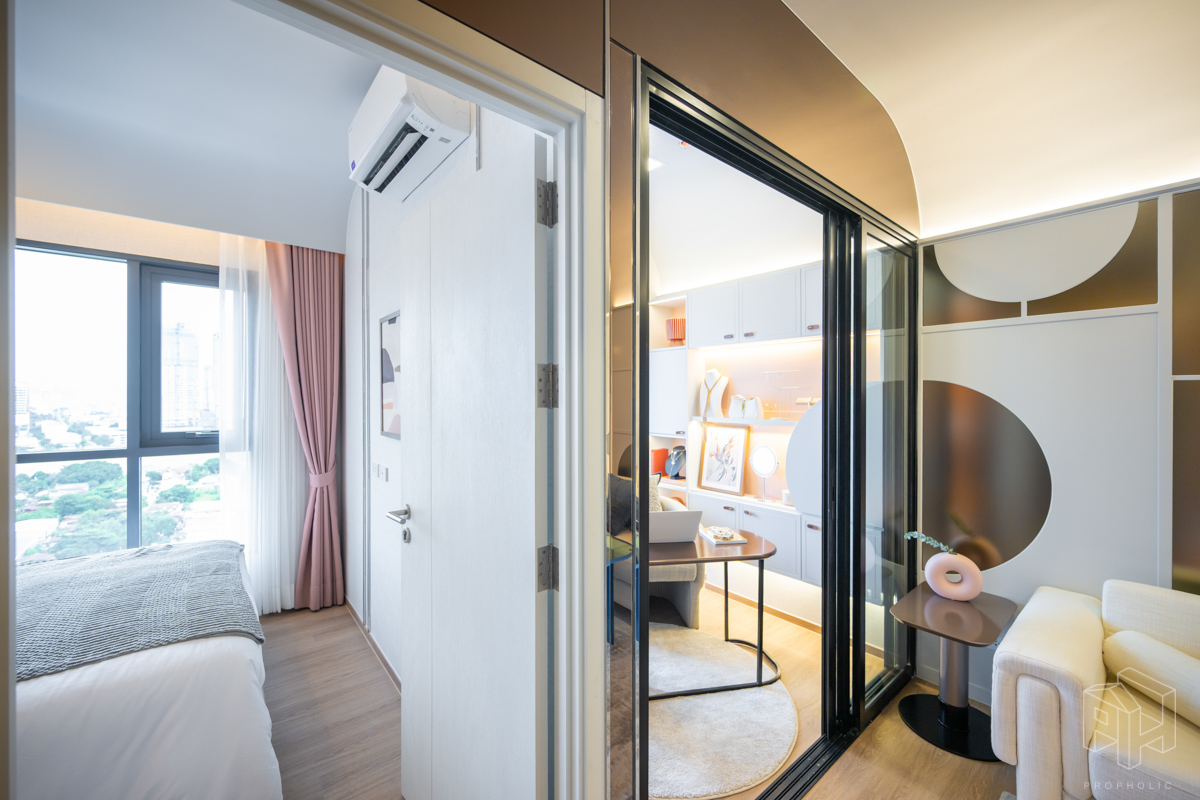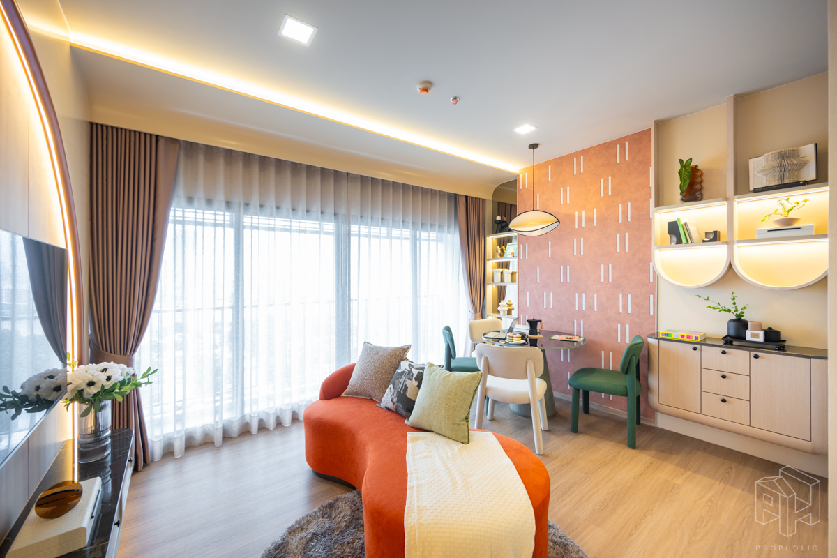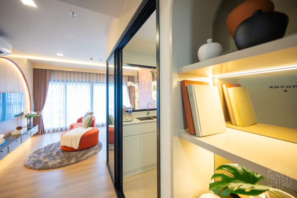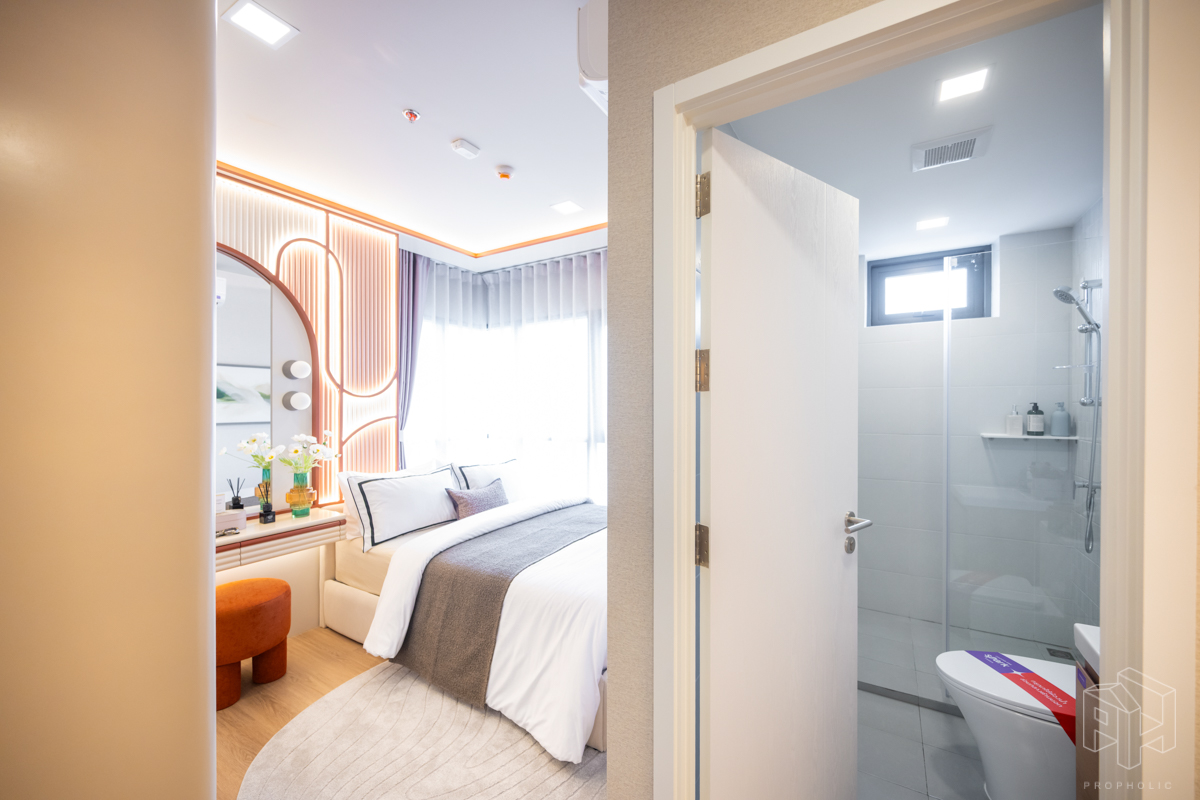 ตัวเลือกห้องพักเองก็ออกแบบมาเพื่อสอดรับกับพฤติกรรมของผู้ซื้อจริง ห้องส่วนใหญ่เป็นขนาด Compact ใช้งานง่าย คุ้มราคา และตอบโจทย์คนรุ่นใหม่ที่ต้องการความครบครันโดยไม่ต้องแบกรับภาระค่าผ่อนสูงหรือค่าใช้จ่ายมากเกินไป ในบางยูนิตยังเป็นห้องเพดานสูงที่ให้มิติการอยู่อาศัยที่โปร่งกว่าและหายากกว่าในตลาด Mass High-rise แต่ยังขายในราคาที่เป็นมิตร ทำให้ภาพรวมของโครงการทั้งคุ้มค่า ใช้งานง่าย และให้ประสบการณ์อยู่อาศัยเหนือกว่าคอนโดในระดับราคาใกล้เคียงกัน