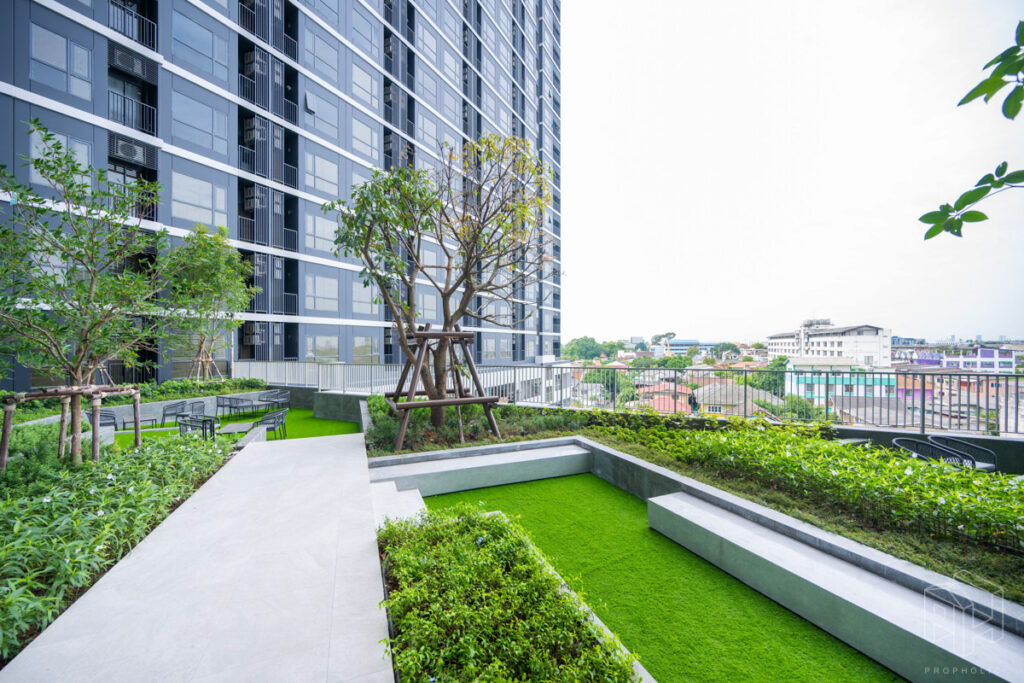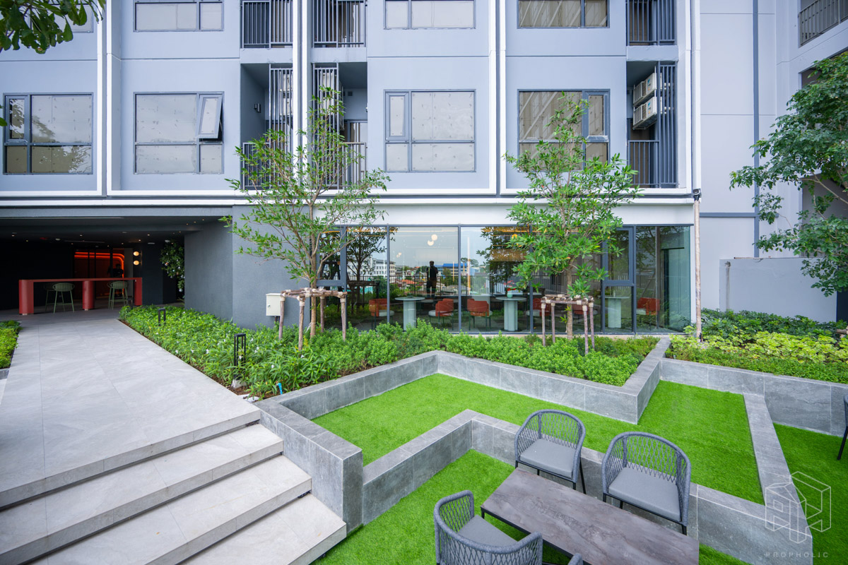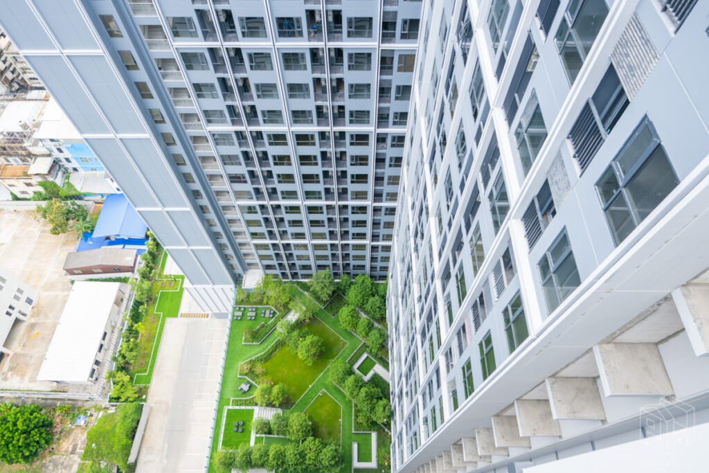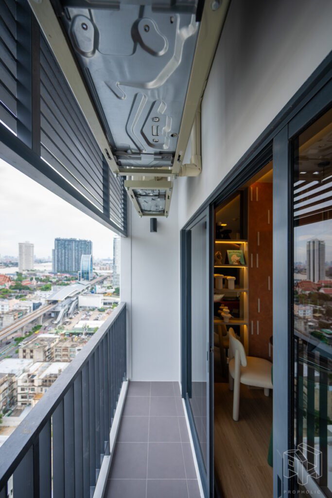 แต่เสน่ห์ของโครงการนี้ไม่ได้อยู่เพียงฝั่งที่ติดแม่น้ำเท่านั้น ห้องที่อยู่อีกด้านหนึ่งซึ่งไม่เห็นวิวแม่น้ำกลับมอบความสงบเงียบในแบบที่หลายคอนโดในเมืองไม่สามารถให้ได้ การที่ฝั่งนี้ไม่ติดถนนใหญ่ทำให้ลดเสียงรบกวนลงอย่างมาก และด้วยบริบทบ้านเก่ารอบ ๆ ทำให้การมองออกไปนอกหน้าต่างไม่ได้รู้สึกถูกโอบด้วยตึกแออัดเหมือนอยู่ใจกลางเมือง อีกทั้งราคายูนิตฝั่งนี้ยังสบายกว่าอย่างมาก เหมาะกับคนที่ต้องการอยู่จริง ใช้ชีวิตจริง ไม่ได้ต้องการจ่ายเพิ่มเพื่อวิว แต่ต้องการความคุ้มค่าที่สุดในการอยู่อาศัย หรือแม้แต่ผู้ลงทุนที่ต้องการยูนิตปล่อยเช่าในระดับราคาจับต้องได้ซึ่งมีดีมานด์ต่อเนื่องในย่านจรัญฯ