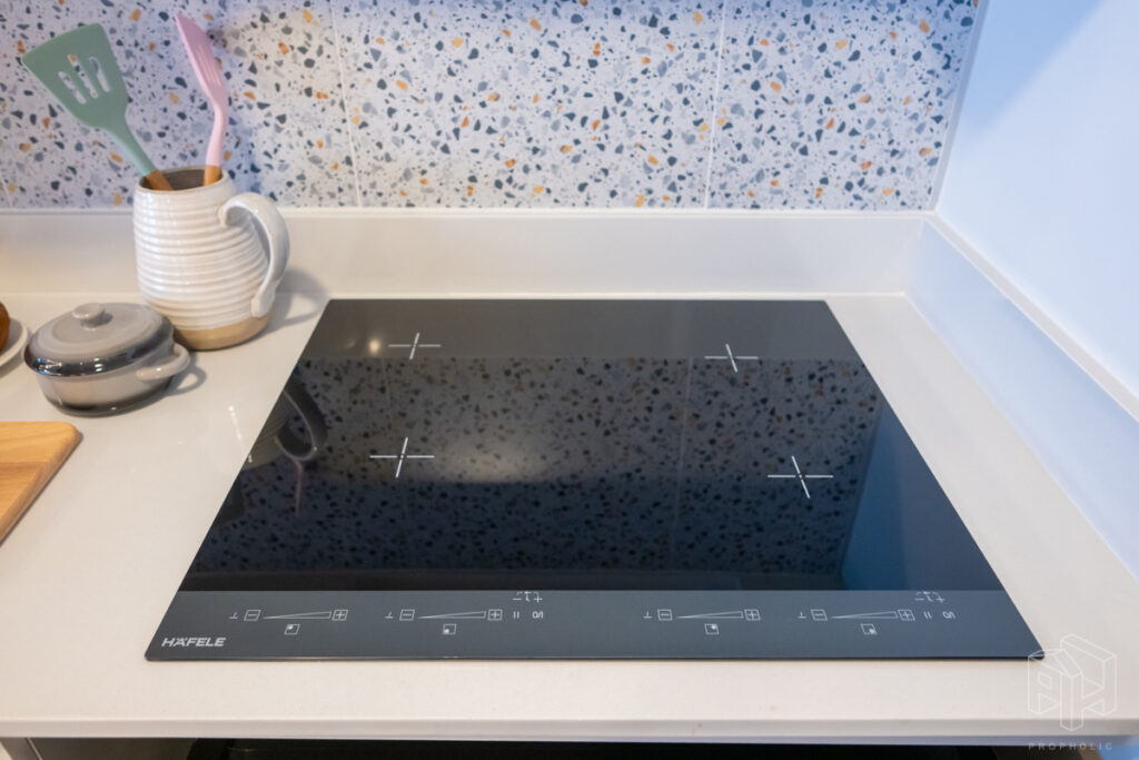 เตาไฟฟ้า 4 หัวแบบสัมผัส หน้าเตาเป็นกระจก ดีไซน์มินิมอลและทำความสะอาดง่ายหลังใช้งาน