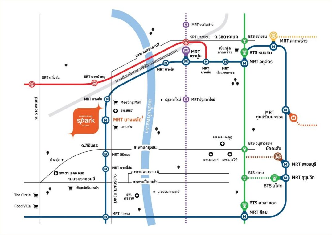 นอกจากนี้ โครงการ Chapter One Spark Charan ยังรายล้อมด้วยโครงสร้างพื้นฐานที่เสริมการเดินทางแบบคูณสามไปเลย ไม่ว่าจะเป็นสะพานพระราม 7 พระราม 8 สะพานกรุงธนฯ รวมถึงทางด่วนศรีรัช และสะพานเกียกกายที่กำลังก่อสร้างอยู่ ซึ่งทั้งหมดทำให้คอนโดแห่งนี้กลายเป็นทำเลที่สามารถเลือกเดินทางได้หลากหลายทิศทางแบบไม่มีสะดุด