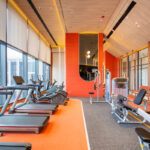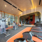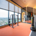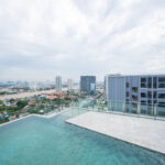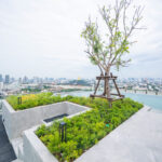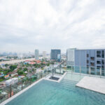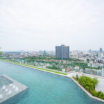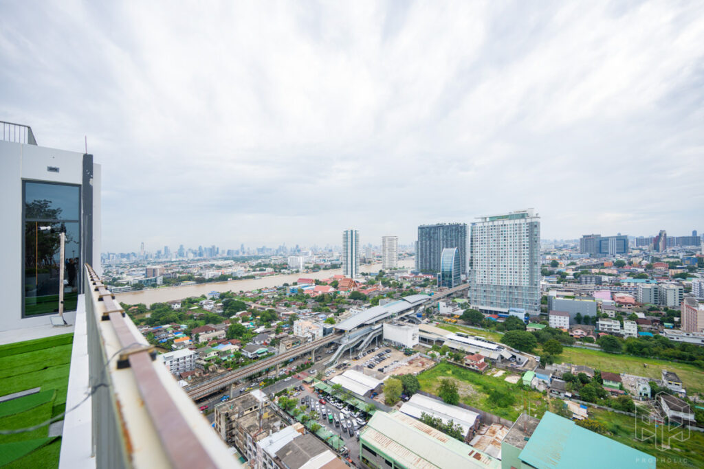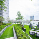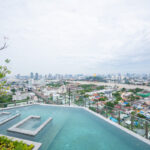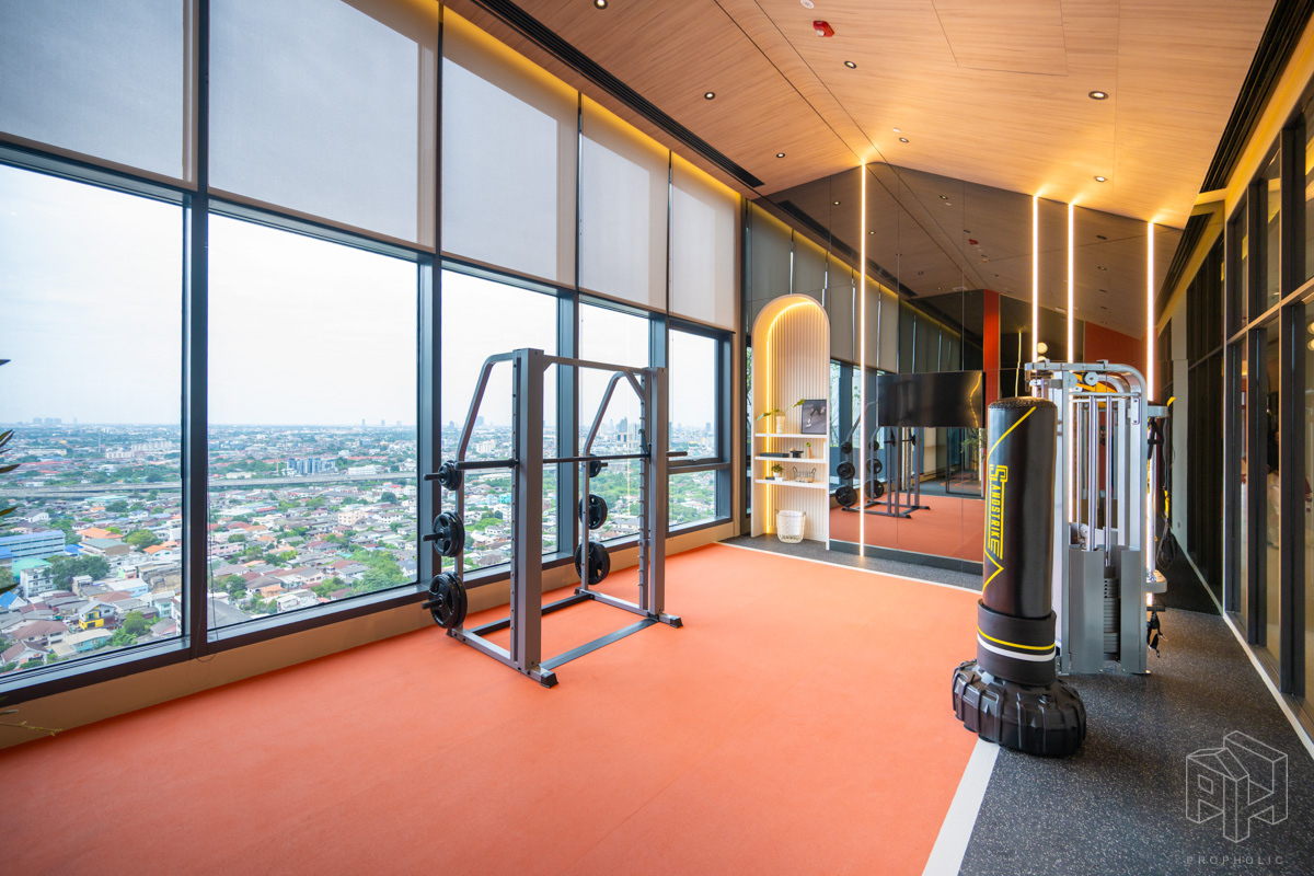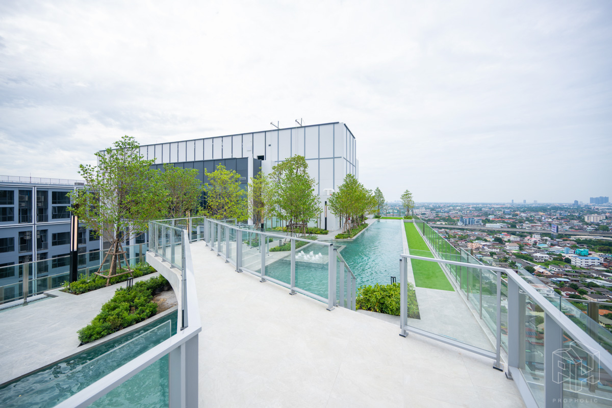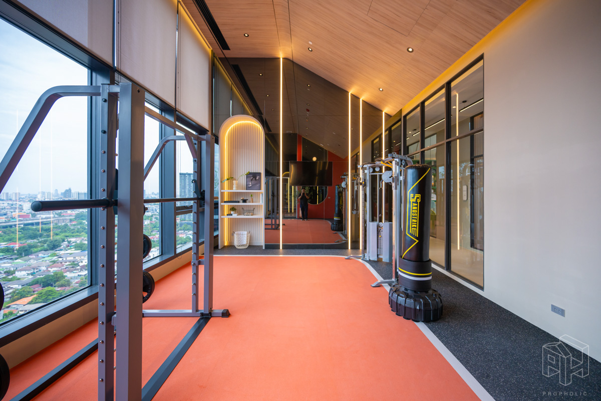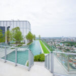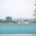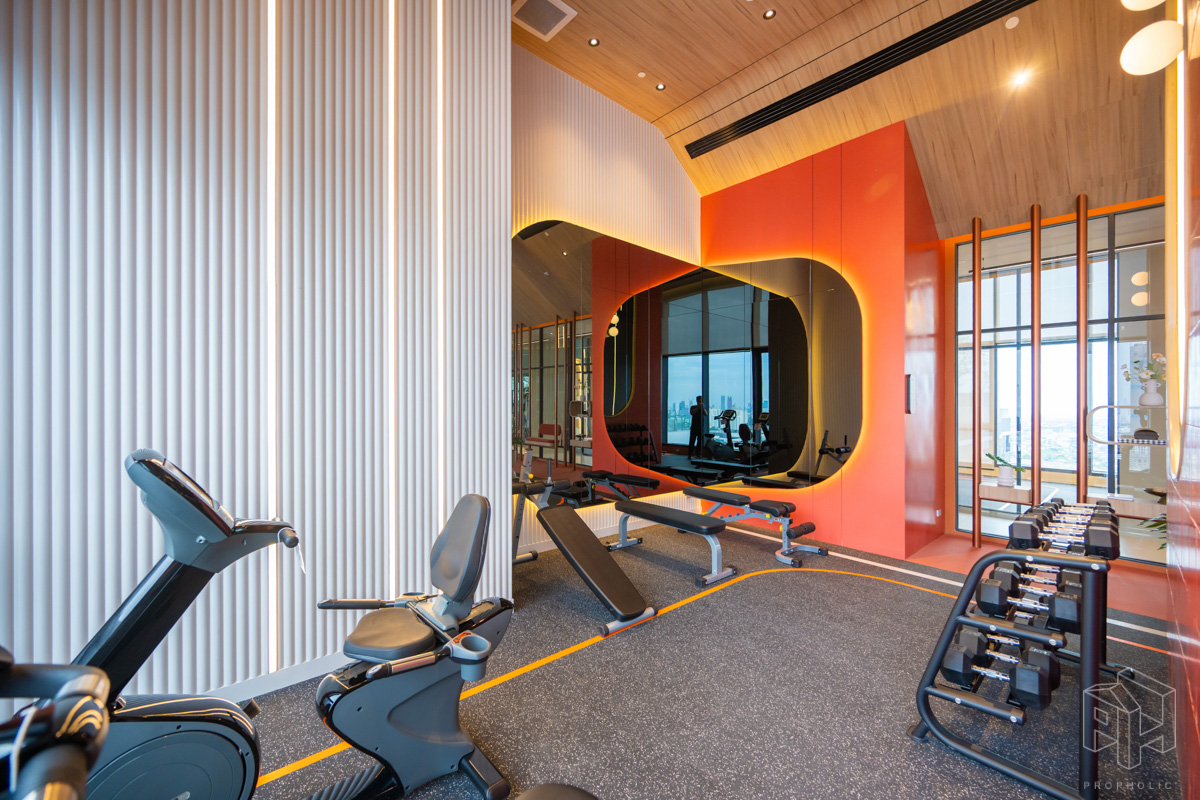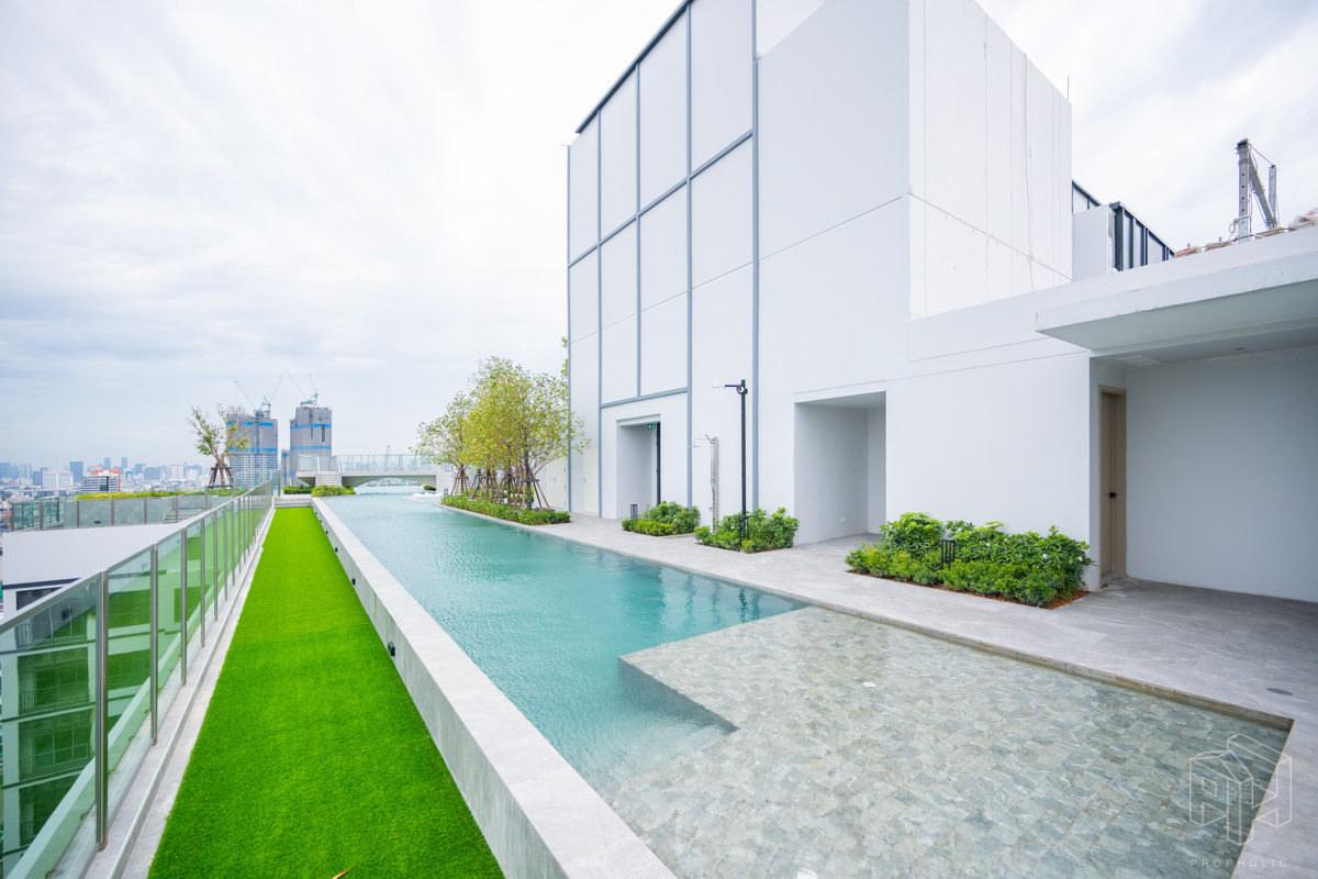 บนชั้นดาดฟ้าของอาคาร บรรยากาศของความเป็น “คอนโดวิวแม่น้ำ” ยิ่งเด่นชัดขึ้นไปอีก สระว่ายน้ำยาวกว่า 50 เมตร ทอดตัวไปมองเห็นเส้นขอบน้ำที่ไหลเรื่อย เหมือนต่อเนื่องกับตัวสระ Sky Fitness ที่มีกระจกบานใหญ่เปิดรับวิว และพื้นที่ลอยฟ้าที่ถูกออกแบบให้เป็นจุดพักผ่อนจริงจังมากกว่าพื้นที่สวยงามเพื่อโชว์ ภาพจริงจากชั้นนี้ในวันที่ฟ้าใส หรือวันที่แสงพระอาทิตย์กำลังลับเส้นน้ำคือสิ่งที่ยากจะหาได้ในคอนโดราคาใกล้เคียงกันในย่านนี้ หรือแม้แต่คอนโดหลายแห่งในโซนใจกลางเมืองเองก็ไม่สามารถมอบทิวทัศน์แบบนี้ในระดับราคาเดียวกันได้