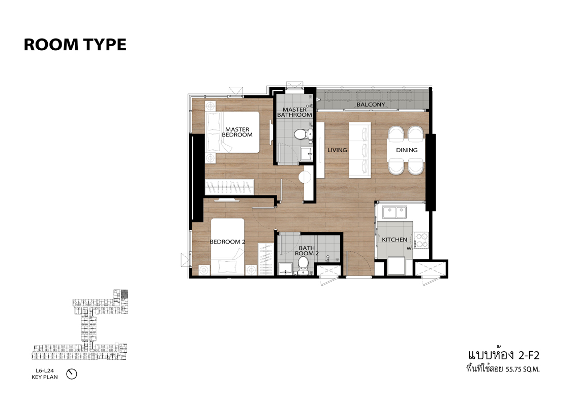 2 Bedroom 2 Bathroom ขนาด 55.75 ตารางเมตร