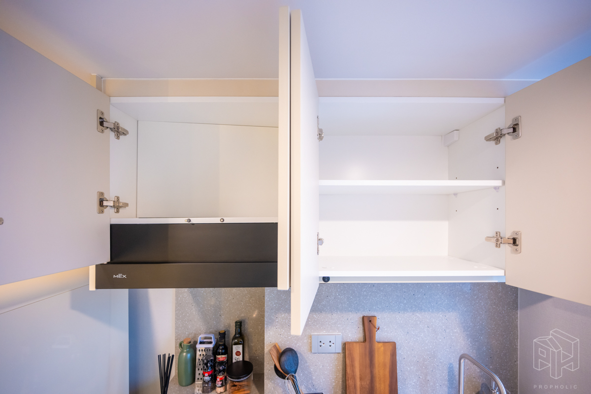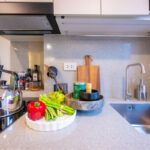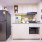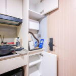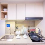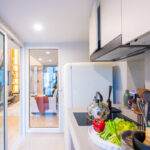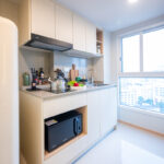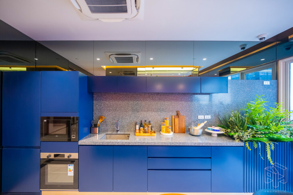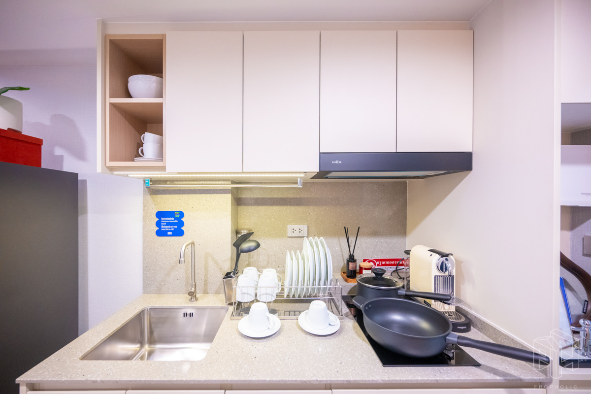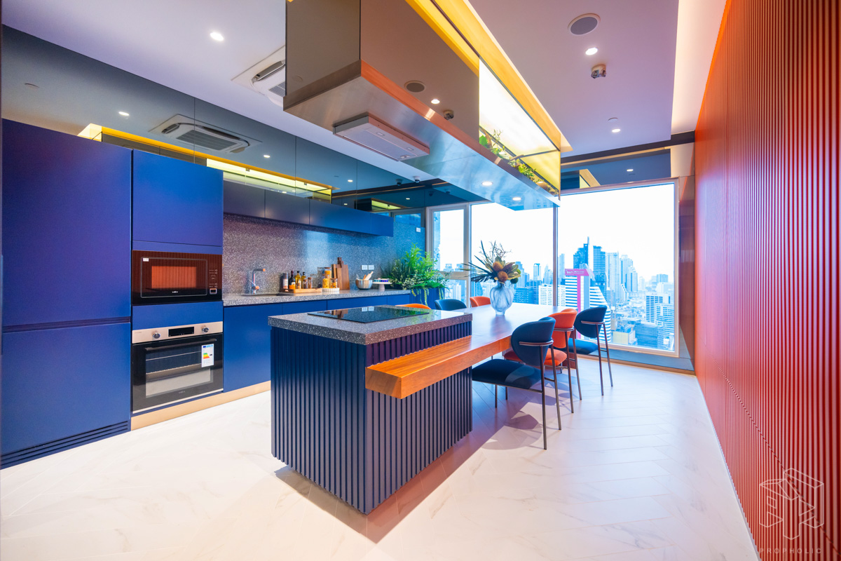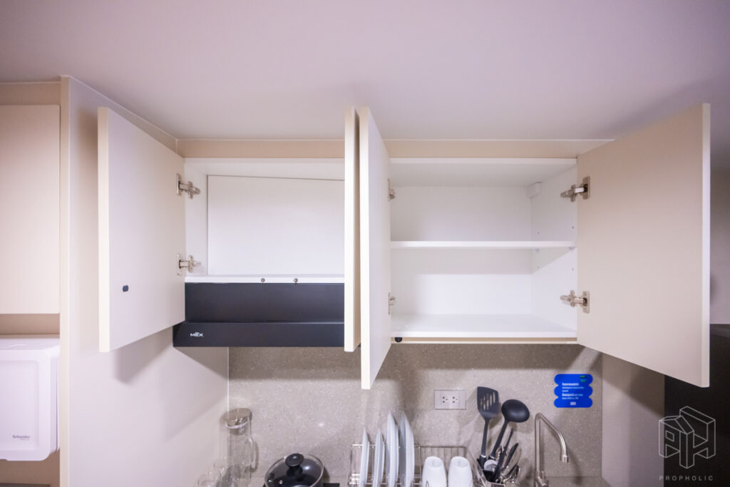 ครัวห้องนี้เป็นแบบปิดติดอากาศ มีพื้นที่กว้าง สามารถเข้ามาทำอาหารด้านในพร้อมกันได้หลายคน และครัวแบบนี้ช่วยในเรื่องของการระบายกลิ่นอาหารให้ไม่เข้าไปรบกวนภายในห้องได้อีกด้วย