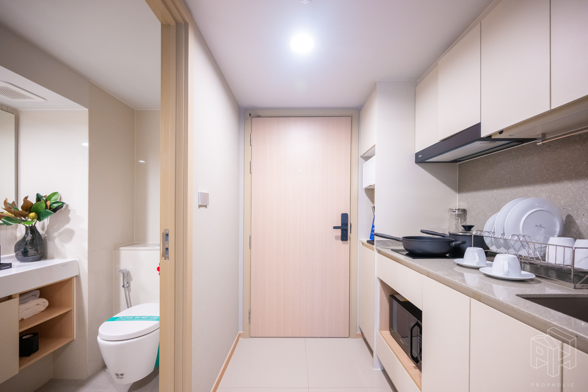 แต่การทำ Minor Change แบบนี้เรียกได้ว่าเพิ่ม Value ของห้อง 1 Bed Plus ให้ขึ้นมาเทียบเท่ากับห้องแบบ 2 Bedroom เลยทได้ฟังก์ชันการใช้งานที่เยอะกว่า ครบคุ้มทุกตารางเมตรเลยนะ เพราได้ครัวปิดติดอากาศ ในแบบที่ห้อง 2 Bedroom 2 Bathroom ก็ให้ไม่ได้ แถมพื้นที่หน้าห้องก็ยังกว้างเหลือๆพอที่จะจัดสรรให้เป็นตู้เก็บของ หรือตู้โชว์โมเดล ของสะสมสวยๆ ไว้อวดเพื่อนได้เลย เรียกได้ว่าใครชอบแบบห้องที่ใช้ประโยชน์ได้หลากหลาย ต้องโดนใจกับห้อง One Bedroom Plus แบบนี้