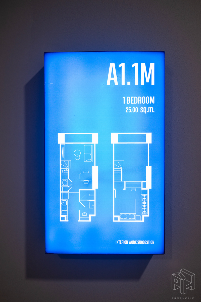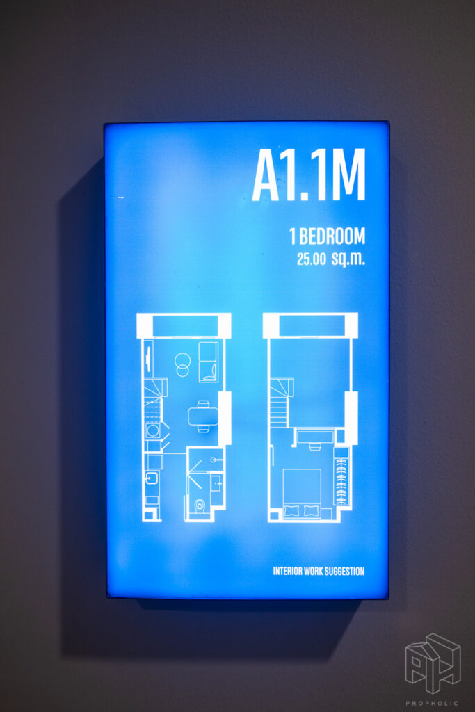 1 ห้องนอน ขนาด 25.00 – 26.5 ตร.ม. (เฉพาะพื้นที่ชั้นล่าง หากรวมพื้นที่ใช้สอยทั้งหมดจะประมาณ 33 – 44.5 ตรม.) / 1 ห้องนอน พลัส ขนาด 33.00 – 35.5 ตร.ม. (เฉพาะพื้นที่ชั้นล่าง หากรวมพื้นที่ใช้สอยทั้งหมดจะประมาณ 51 – 60 ตรม.)