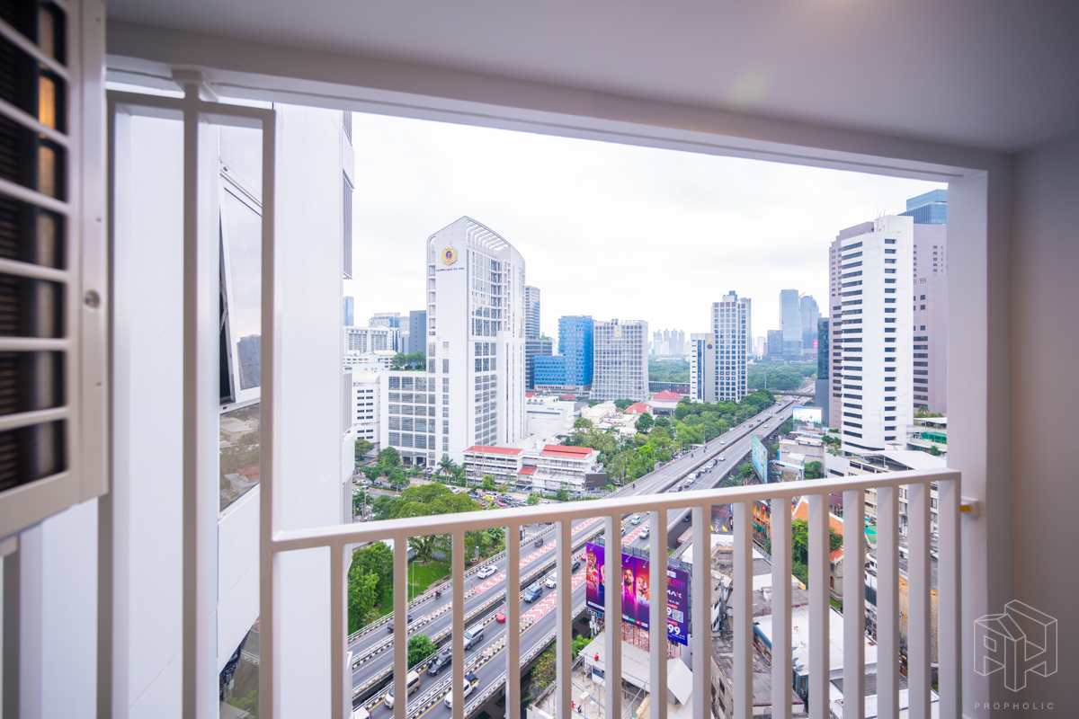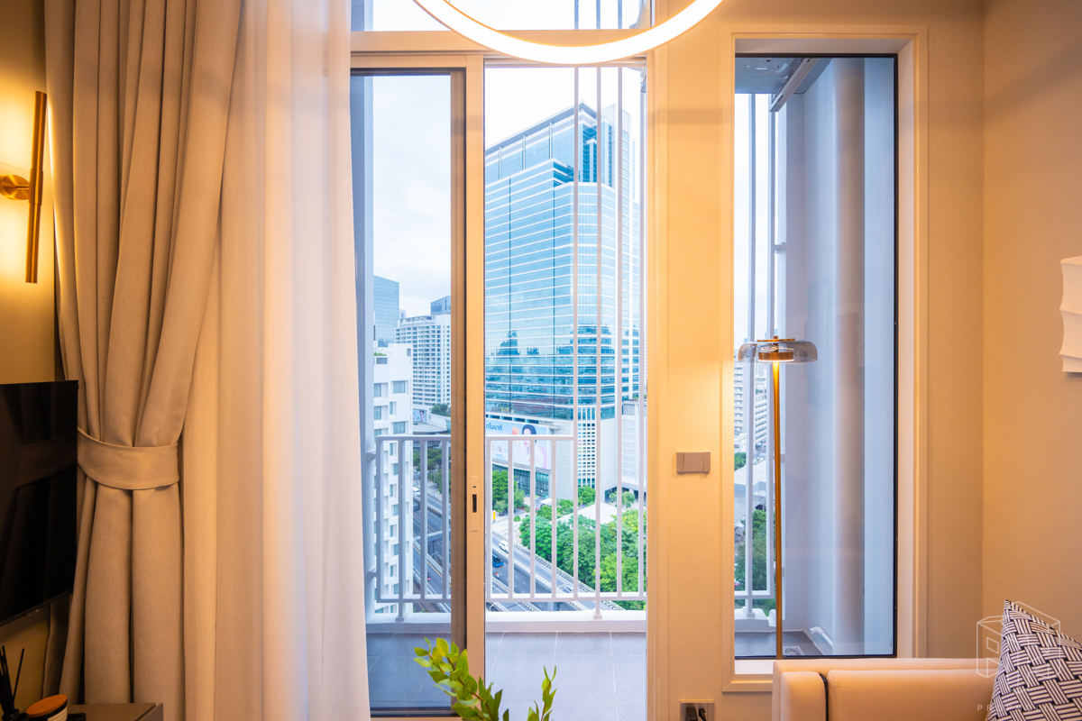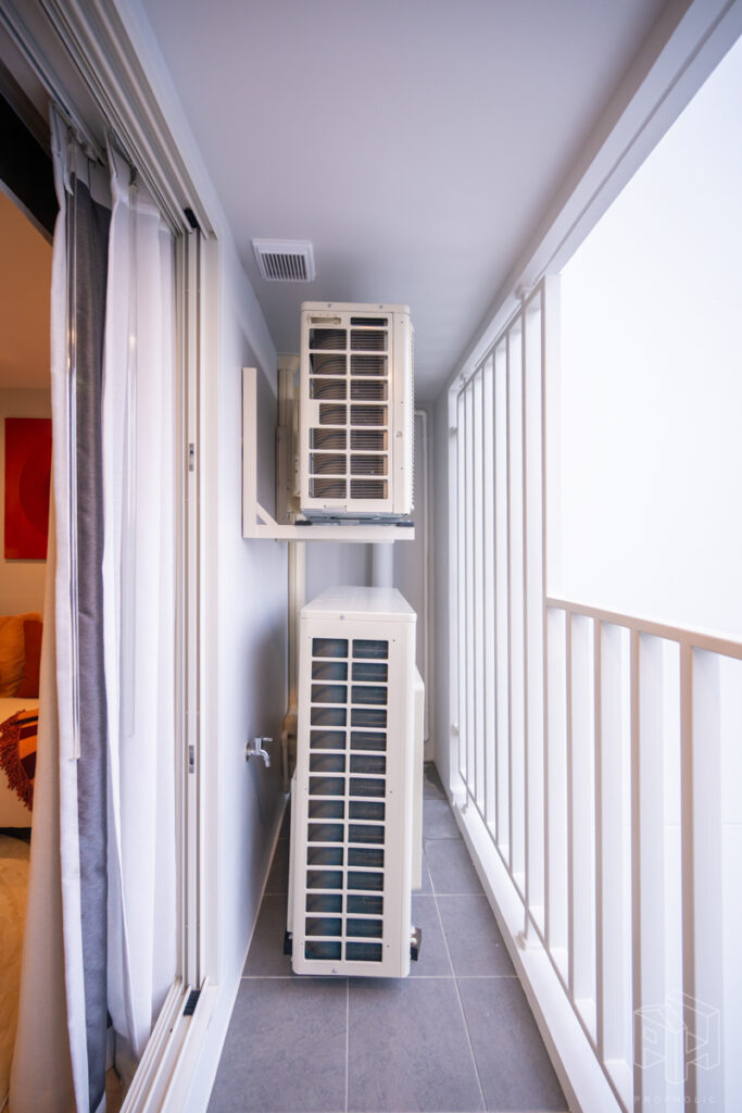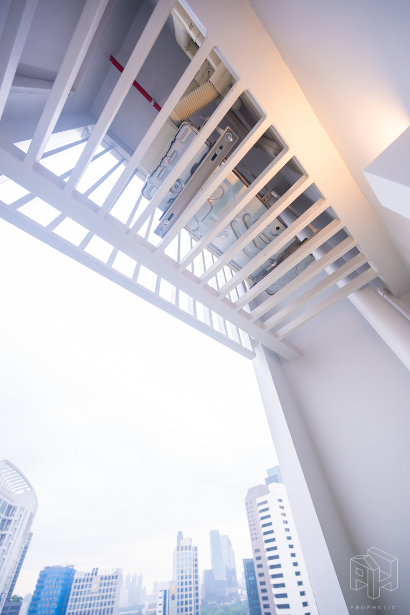 บริเวณระเบียงมีการแขวน CDU แอร์ไว้ด้านบน ทำให้ระเบียงมีพื้นที่สำหรับวางกระถางต้นไม้หรือเก้าอี้เล็กไว้สำหรับออกไปนั่งเล่นด้านนอกได้