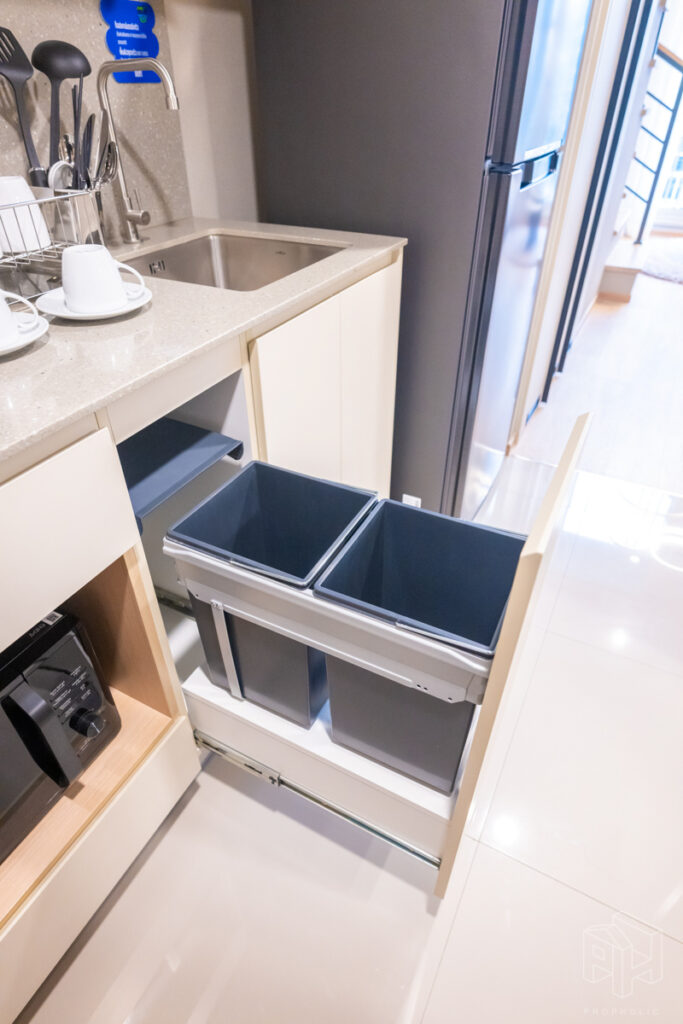 มีถังขยะแยกประเภทเอาไว้ให้ที่ใต้เคาท์เตอร์ครัว
