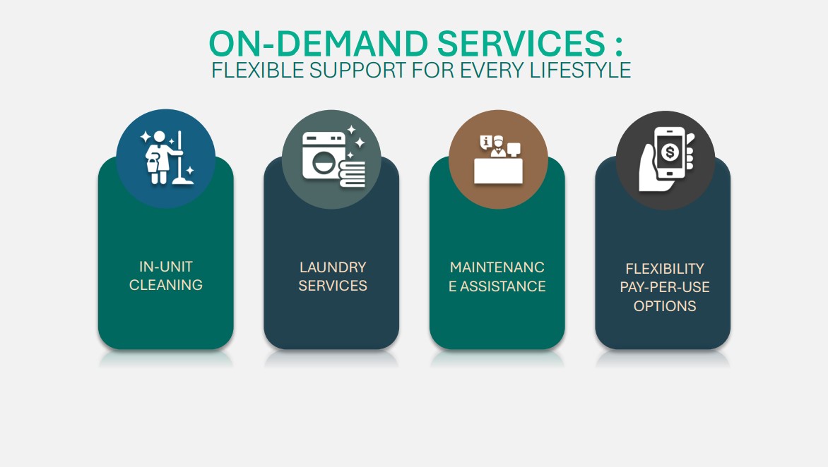 มากไปกว่านั้นตัวโครงการยังมี On Demand Service สำหรับผู้ที่มีความต้องการพิเศษในแบบฉบับของตัวเอง อย่าง การทำความสะอาดห้อง (Room Cleaning Service), บริการซักผ้า (Laundry Service) และบริการเสริมอื่นๆ (On Demand Activity) เช่น คลาสเรียนโยคะ เป็นต้น ซึ่งข้อดีก็คือเหมือนกับเราเป็นเจ้าของ Service Apartment เลย มีบริการต่างๆ หลากหลายรูปแบบ สามารถดูแลได้ง่าย หรือถ้าจะปล่อยเช่า ก็ปล่อยได้ง่ายเช่นกัน เนื่องจากแบรนด์ Ascott เป็นแบรนด์ที่คนทั่วโลกรู้จักกันดี