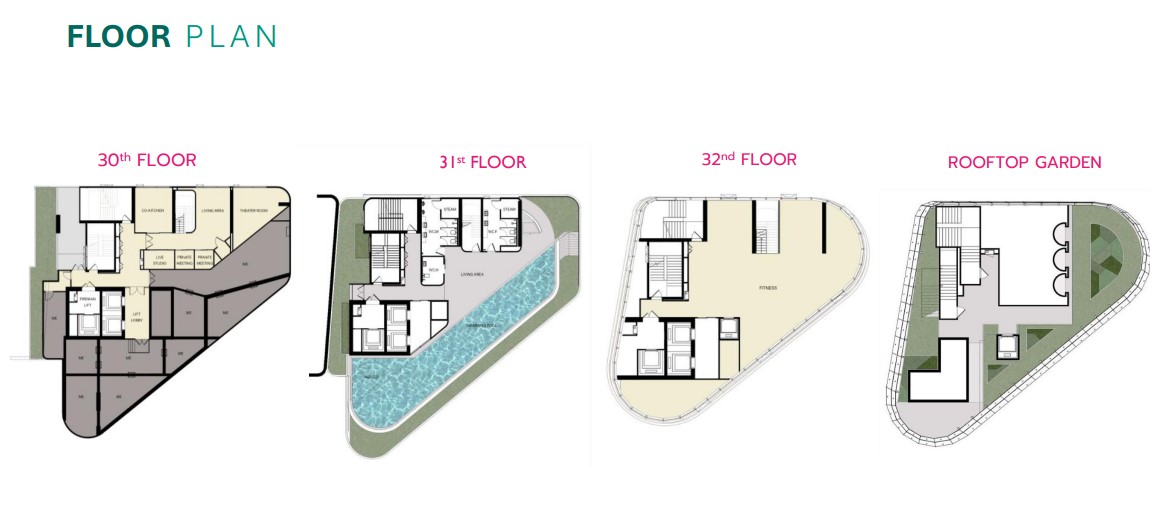ชั้น 30 มี Facilities หลายฟังก์ชั่น ได้แก่ ห้อง Co-working, Co-Kitchen , ห้องดูหนัง, ห้องประชุม, ห้อง Video Call และ Live Studio, ชั้น 31 มีสระว่ายน้ำสวนส่วนกลางห้องซาวน่าพื้นที่ใช้งานอเนกประสงค์และห้องเปลี่ยนเสื้อผ้า, ชั้น 32 มีห้องออกกำลังกายพร้อมอุปกรณ์ ออกกำลังกายอย่างเพลิดเพลินชมวิวเมืองสวยๆ และชั้นดาดฟ้า Rooftop มีสวนส่วนกลางอย่างเช่น C-Sky Terrace, Sensory Urban Farming , Breath Pods