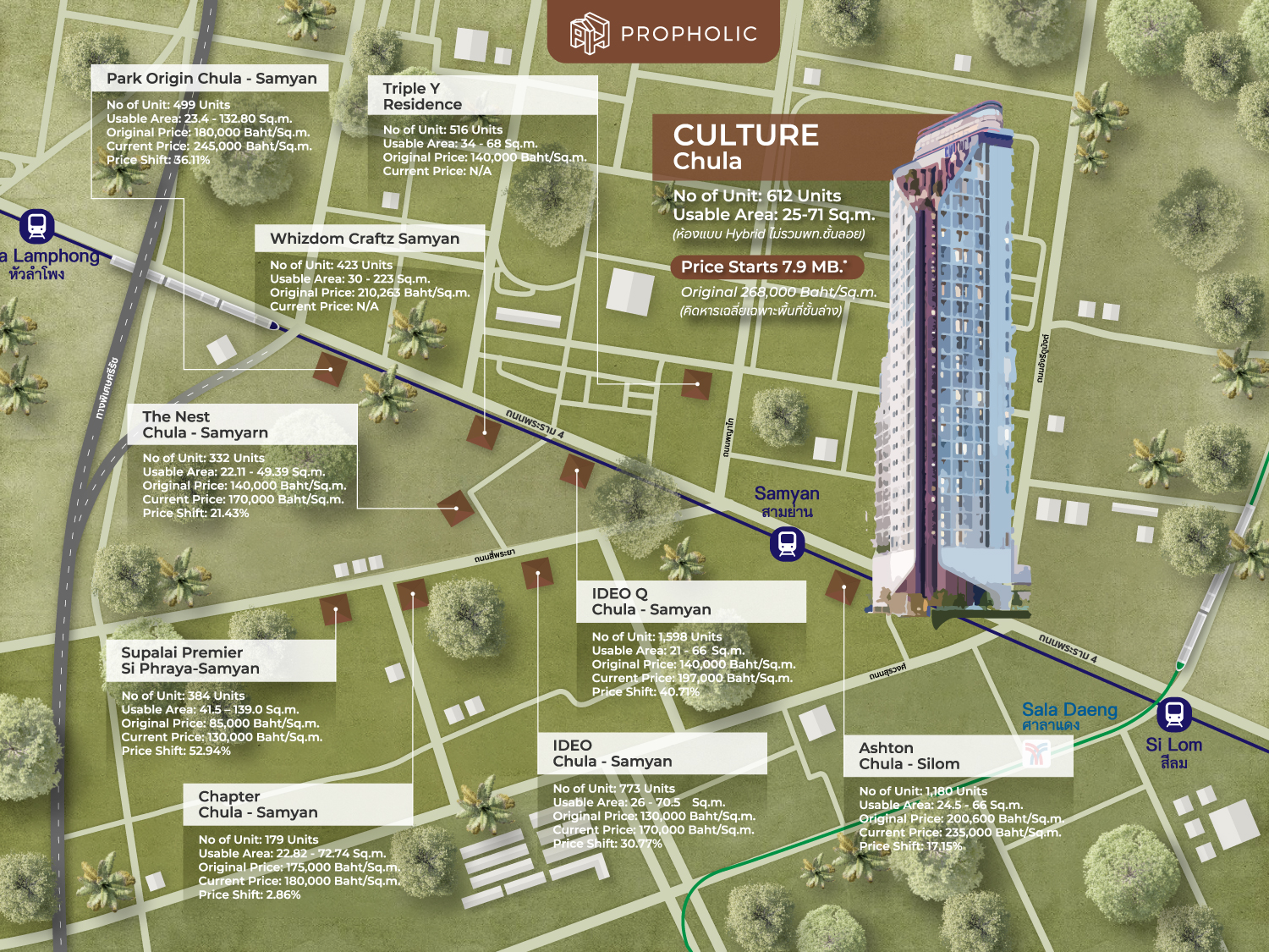 ในย่านพระรามสี่ โดยเฉพาะแถวๆ จุฬา – สามย่าน – สีลม ทาง อนันดาในฐานะเจ้าตลาดคอนโดทำเลนี้ได้มีการปูพรมพัฒนาโครงการคอนโดมิเนียมใกล้รถไฟฟ้า ที่ครอบคลุมหลายเซกเมนต์แล้ว ทั้งแบรนด์ Ideo, Ideo Q, Ashton ดังนั้นเพื่อตอบโจทย์ลูกค้าที่มี Psychological Needs ที่แตกต่างกันทางในยุคที่วิถีชีวิตของคนเมืองมีการปรับเปลี่ยนตามเทรนด์โลกอยู่ตลอดเวลา แบรนด์ Culture จึงถูกพัฒนาขึ้นเพื่อเติมเต็มความต้องการของกลุ่มผู้อยู่อาศัยคนเมืองเจนใหม่ ที่มี Evolvement ไปอีกขั้น โดย Culture จะเน้นในเรื่องของการมองหา Neighborhood Community ในแบบคนคอเดียวกัน และเป็นศูนย์รวมคนที่ใส่ใจในเรื่องของการอยู่อาศัยแบบยั่งยืน (Sustainable Living) ไม่ใช่การต่างคนต่างอยู่โดยที่ไม่ได้มีกิจกรรมหรือทำสิ่งต่างๆ Contribute อะไรให้ส่วนรวม หรือสิ่งแวดล้อมเลย เพื่อการยกระดับให้เป็น Sustainable Living Community ที่จะมาพร้อมกับการบริการโดยแบรนด์ระดับโลกอย่าง The Ascott Limited มี Worldclass services ที่เหมือนได้บริการจากโรงแรมสุดหรูในทุกๆ วัน โดยปัจจุบันแบรนด์ Culture ทั้ง 2 โครงการได้สร้างเสร็จสมบูรณ์พร้อมเข้าอยู่แล้ว ทั้งบริเวณทำเลทองหล่อกับ Culture Thonglor และทำเลพระราม 4 -สามย่าน กับ Culture Chula โครงการคอนโด Freehold ที่ได้รับการยอมรับว่ามีความ Rare & Exclusive มากๆ ในแง่ของทำเลที่ตั้ง ซึ่งในบทความนี้เราจะพาคุณผู้อ่านไปเจาะลึกกันว่าทำไมโครงการ Culture Chula จึงเป็นโครงการที่เข้าใจในวัฒนธรรมการใช้ชีวิตของคนเมืองเจนใหม่บนทำเลพระราม 4 – สามย่าน ได้อย่างสมบูรณ์แบบที่สุด